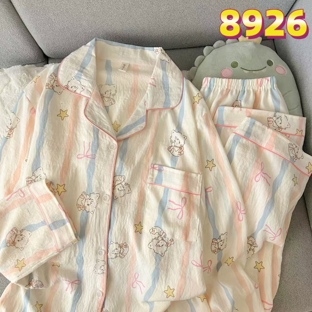 Pijama dài tay Đồ ngủ nữ Ngọt ngào dễ thương Bốn mùa Bộ đồ ngủ đồ mặc nhà Thời trang Thoải mái 8926