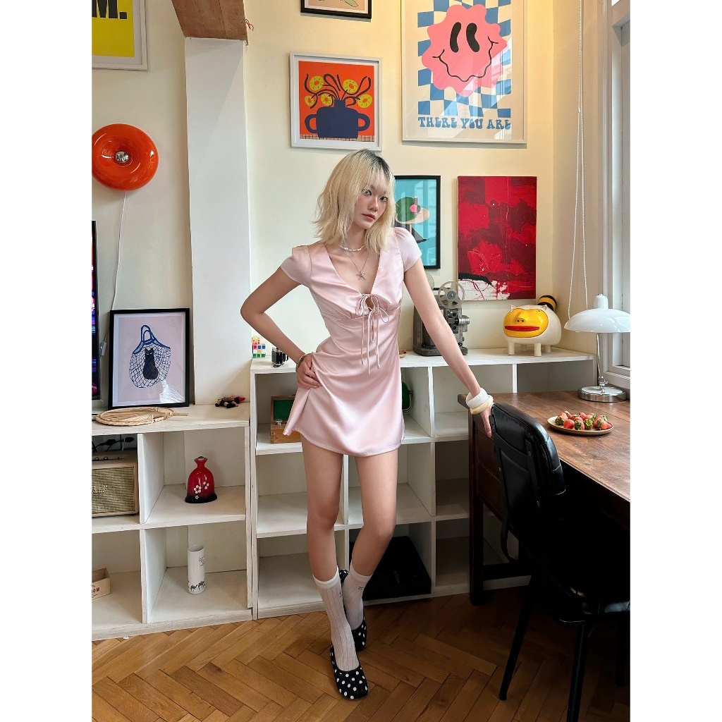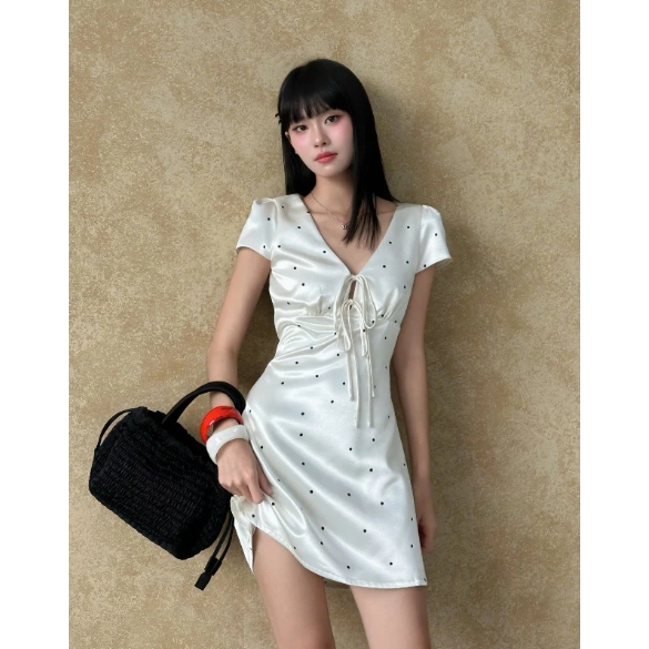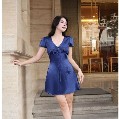 Váy Lụa Nữ Sang Chảnh ANVIE.VN Đầm Lụa Dáng Ngắn Cột Nơ Có tay Thời Trang Dự Tiệc Form Ôm Body VD022