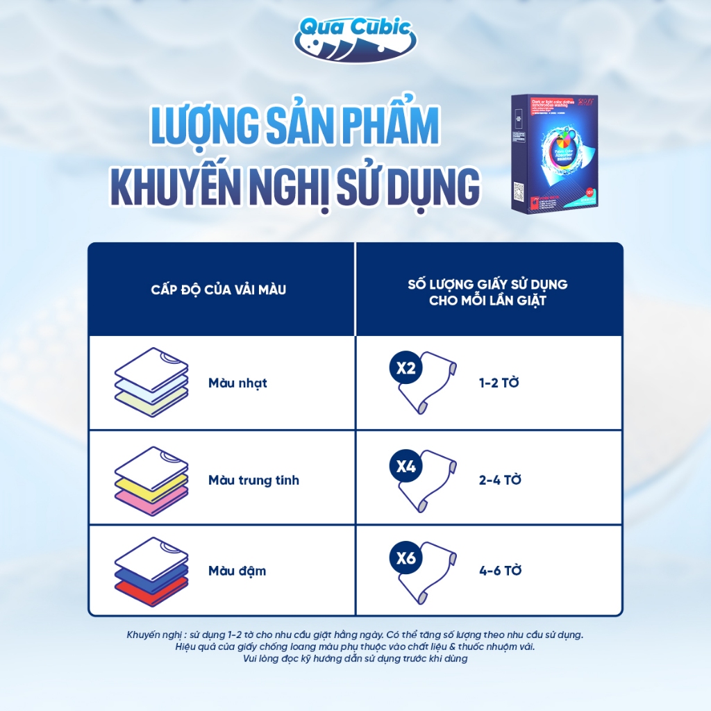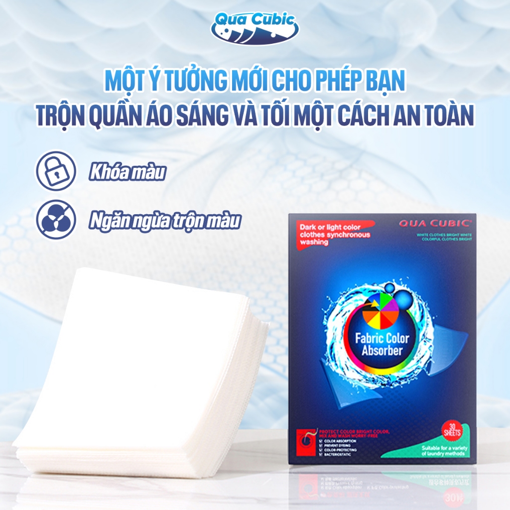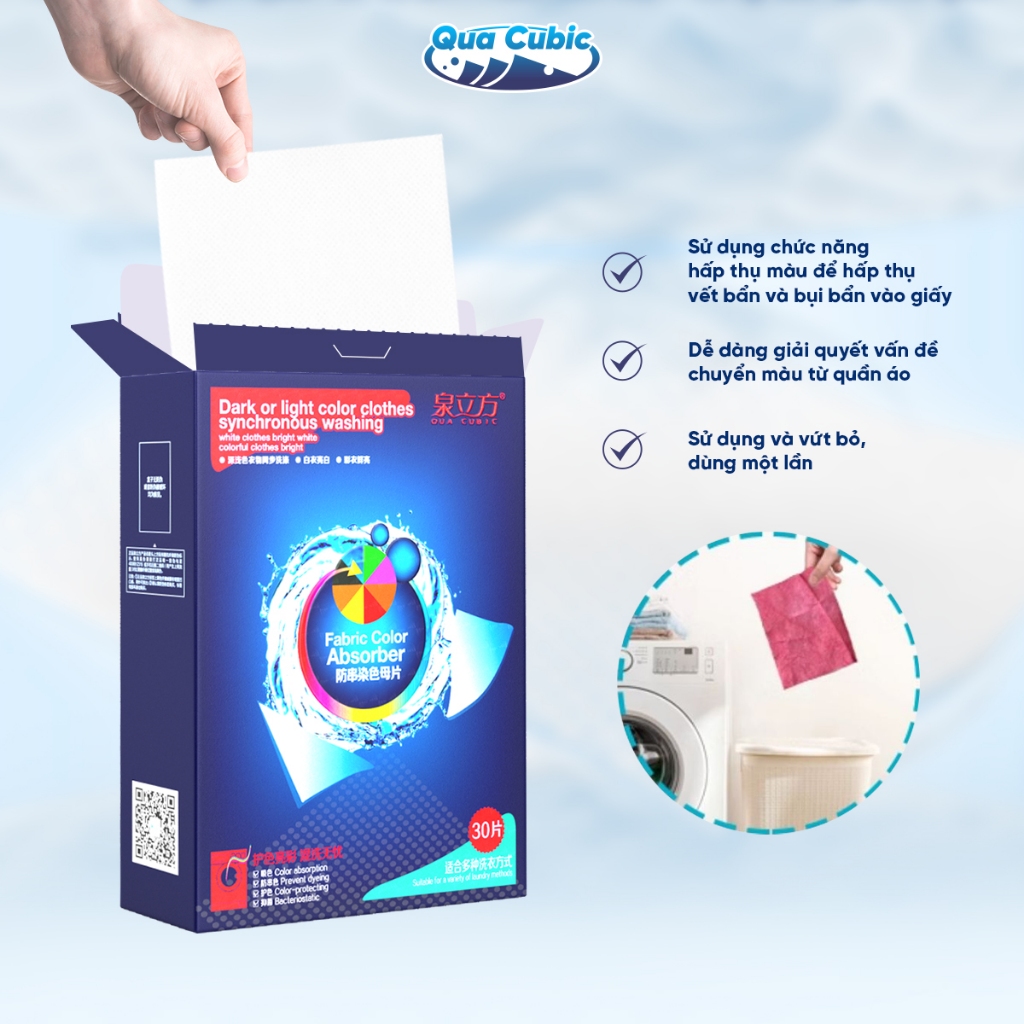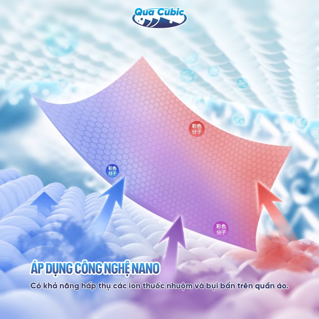 QUA CUBIC Giấy Hút Màu Chống Phai Quần áo Hiệu Cho Máy Giặt Cao Cấp Bền Màu Miếng Giặt Tẩy