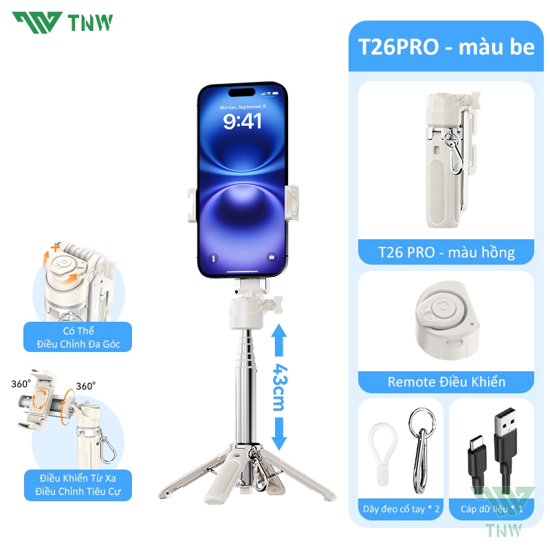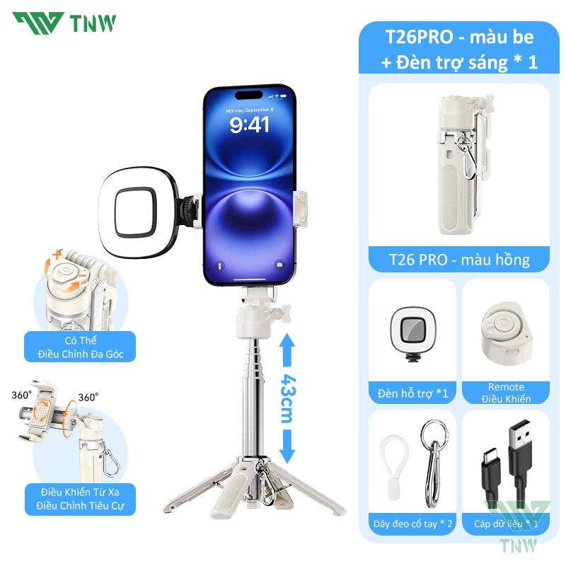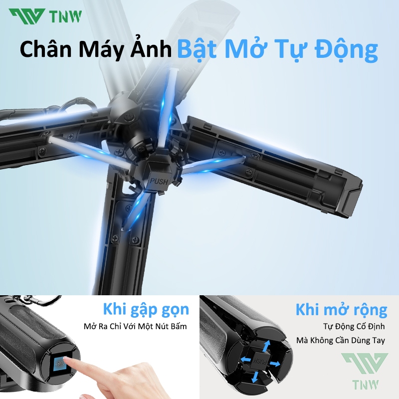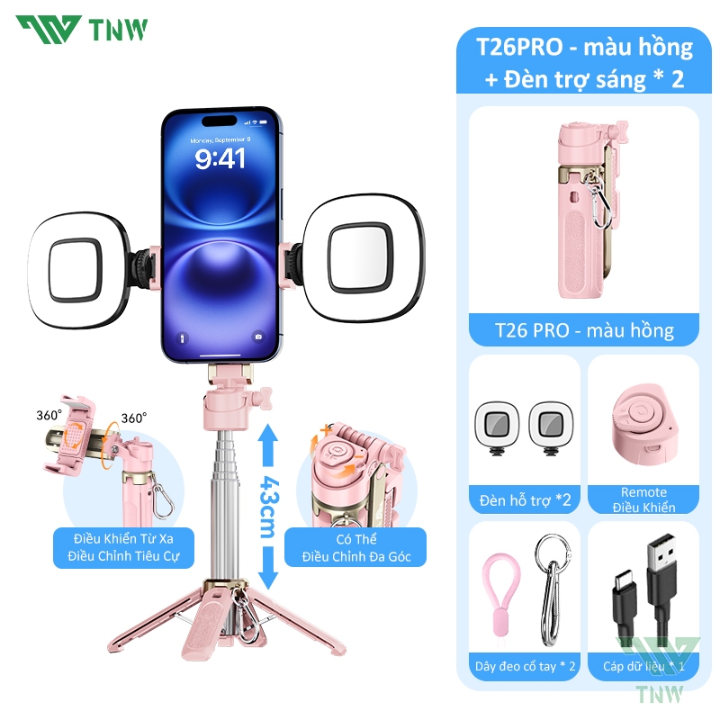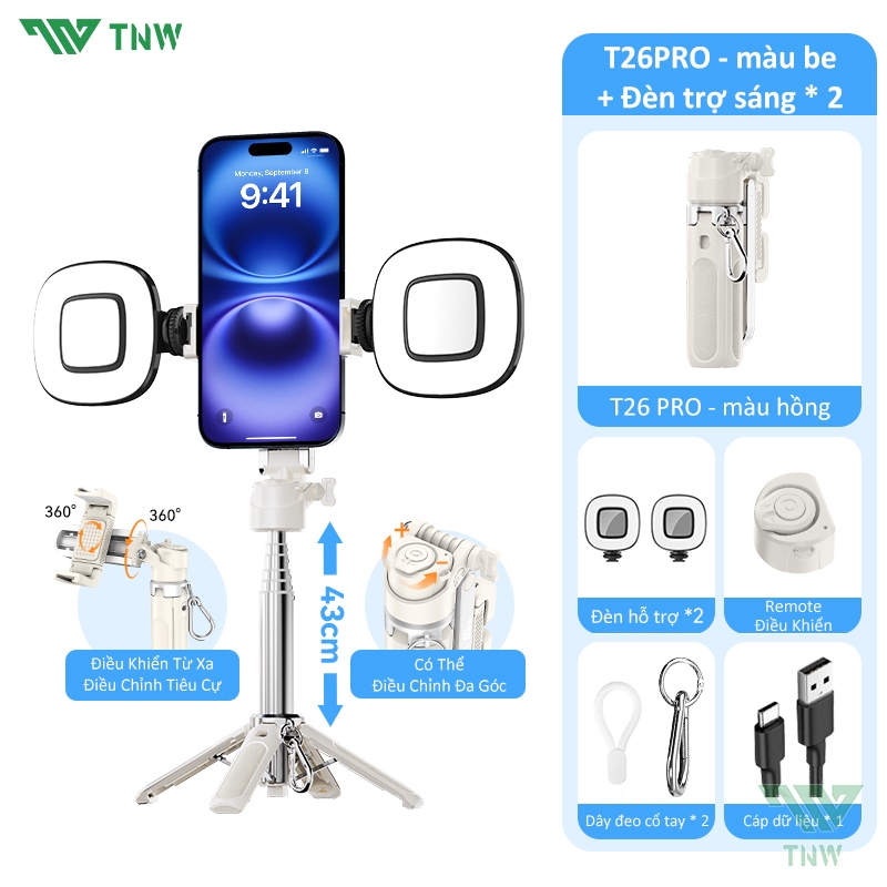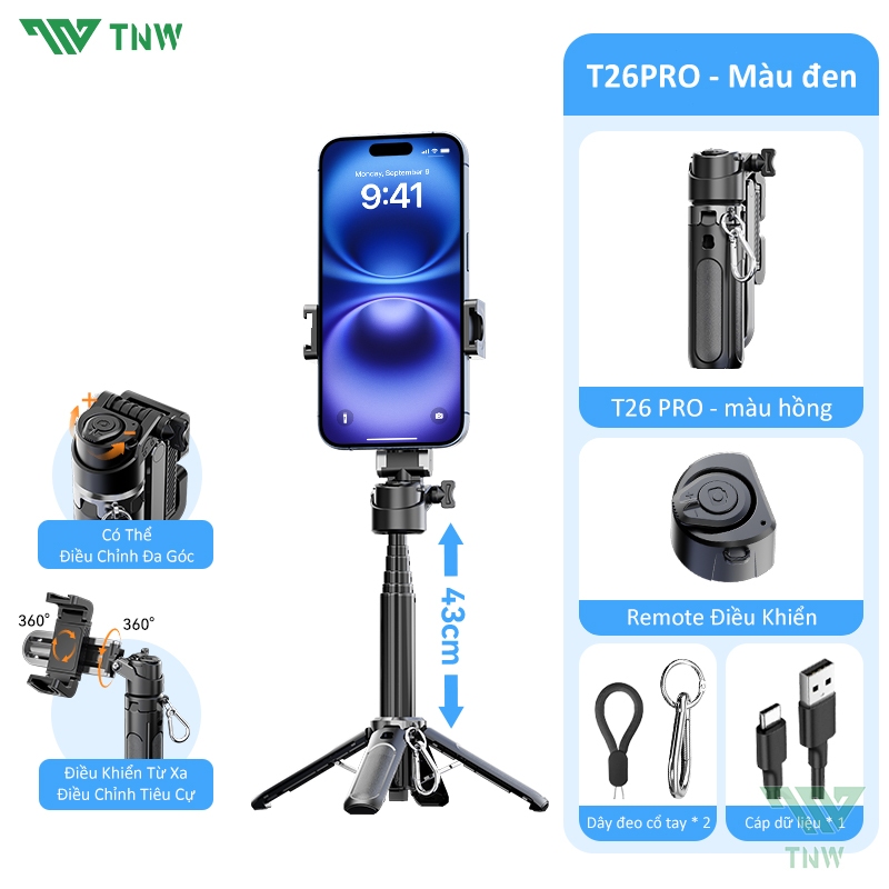 TNW T26Pro Gậy Selfie tự sướng 3trong1 mini Gậy Tự Chụp Bluetooth xoay 360 độ cho Vlog Chống Rung