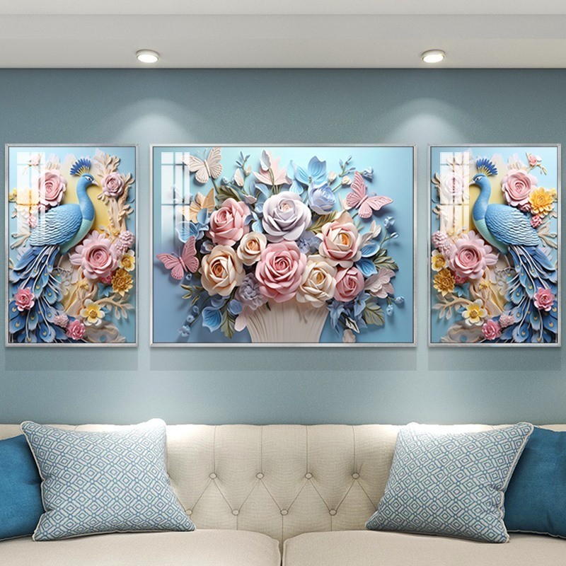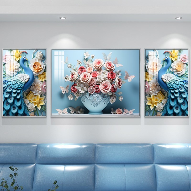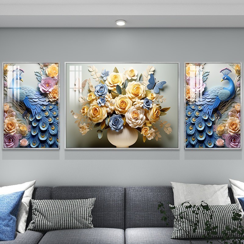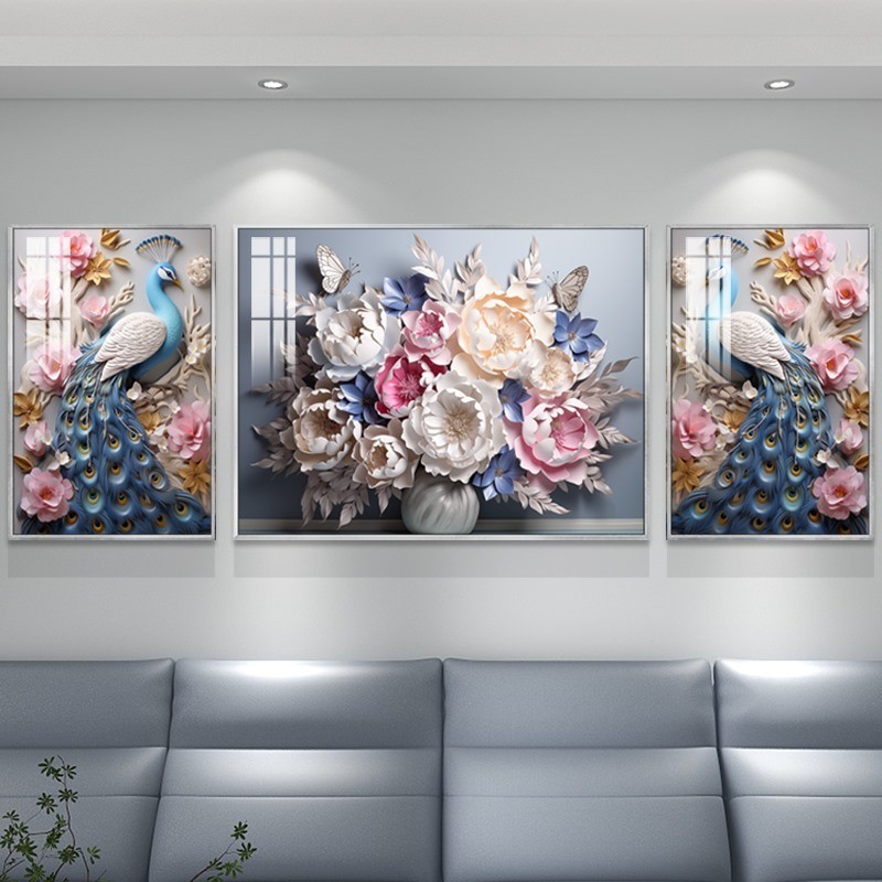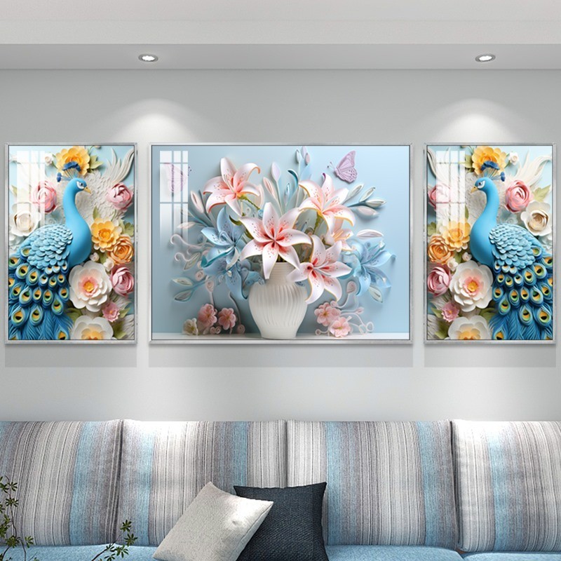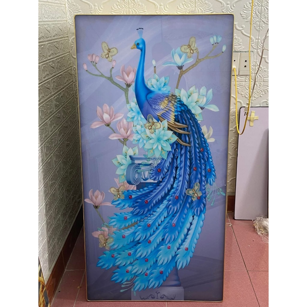 Set 3 Tranh Chim Công Tranh Khổng Tước Tranh Treo Phòng Khách Tranh Tráng Gương Decor Phòng