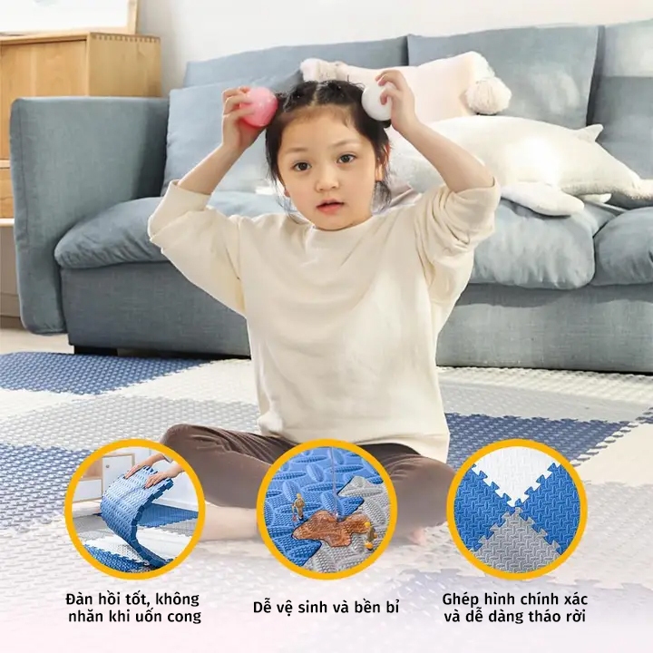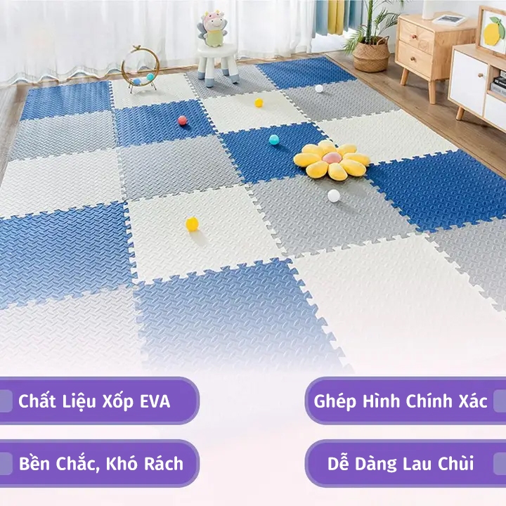 Set 4 Thảm Xốp Ghép Sàn 60x60cm - Chống Trượt, Chống Va Đập, Dày Dặn, Dễ Vệ Sinh Cho Bé