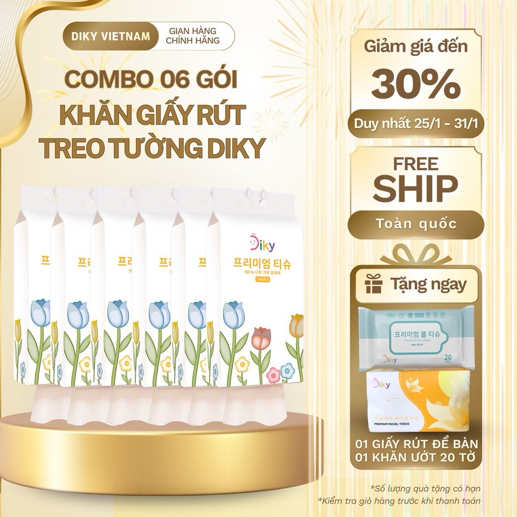 [GIÁ ĐỘC QUYỀN ] Combo 6 Gói Khăn Giấy DIKY Treo Tường 1280 Tờ, 4 Lớp Siêu Dai, Không Mùi