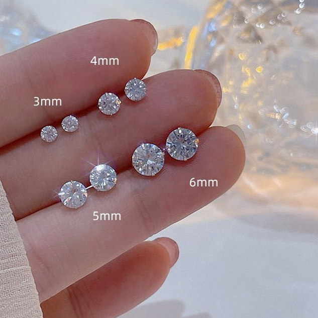 Bông tai nụ đá CZ nhiều kích cỡ cho cả nam và nữ chất liệu bạc S925 unisex