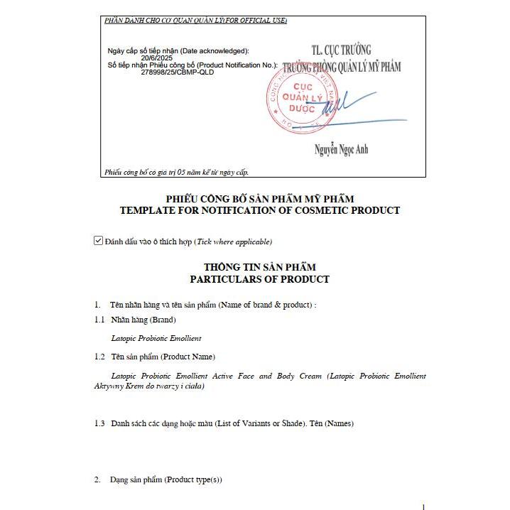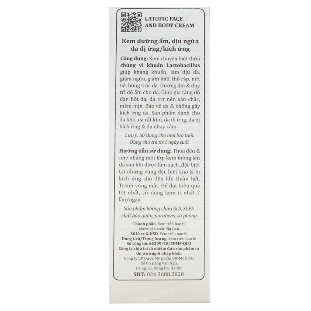 Kem Dưỡng Ẩm LATOPIC PROBIOTIC EMOLLIENT Active Face and Body Cream dành cho da dị ứng/kích ứng 75ml