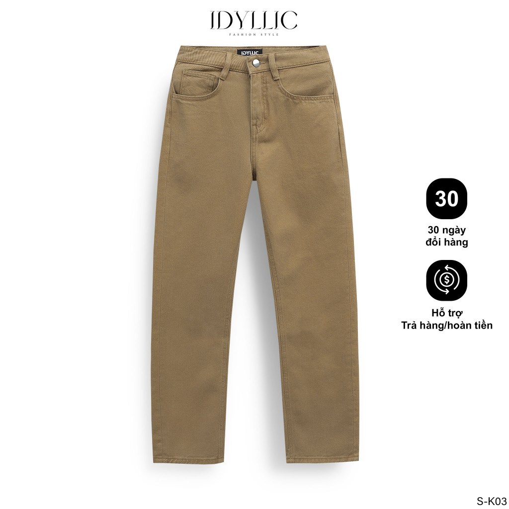 Quần Kaki Denim Unisex Ống Suông Đứng Nam nữ – Thời Trang Lịch Sự Không Co Giãn – IDYLLIC