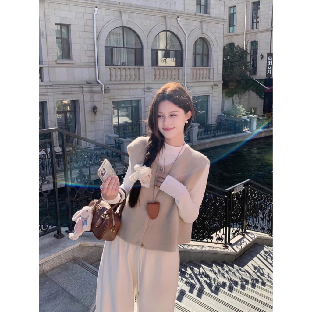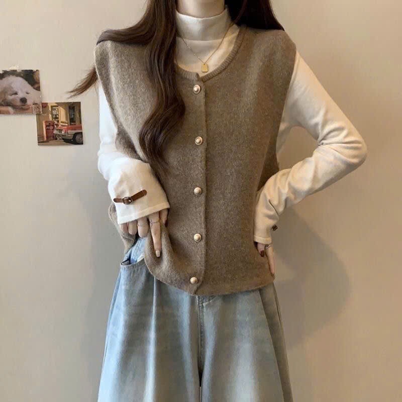 Áo Gile Len Dáng Vừa Cài Nút Đồng Cổ Tròn Chất Len Lông Thỏ Mềm Mịn Màu Trơn Hot Trend Thu Đông Phong Cách Hàn Quốc Mmcl