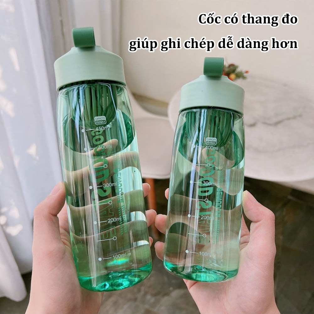 Bình Nước Nhựa 750ml Có Vạch Đo Dung Tích An Toàn BPA Free Cho Thể Thao Gym Văn Phòng Du Lịch Chống Rò Rỉ