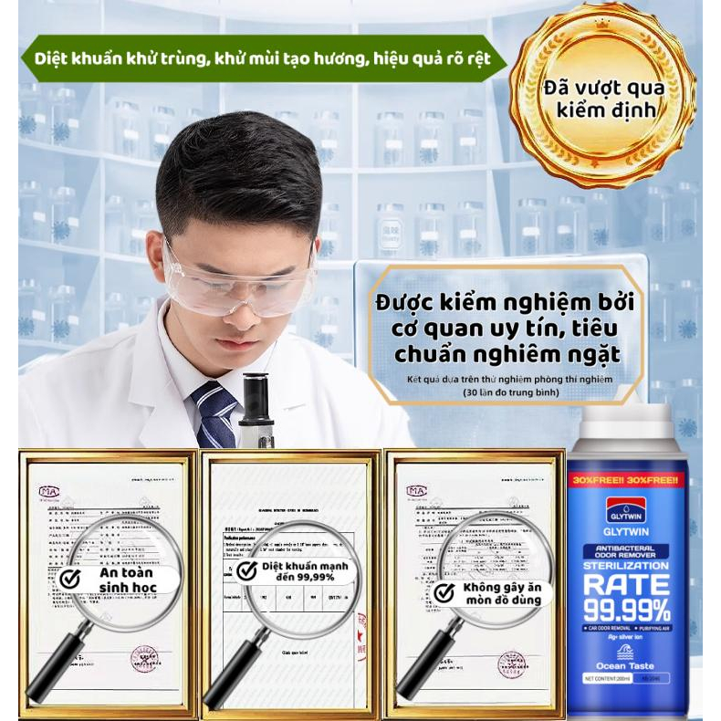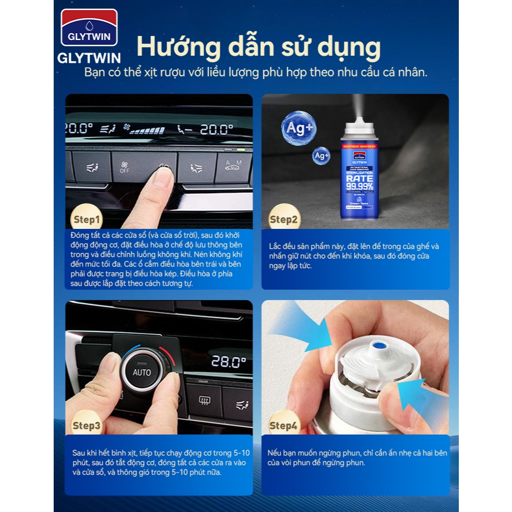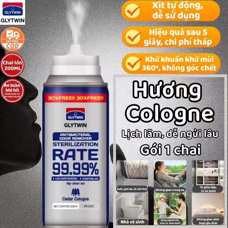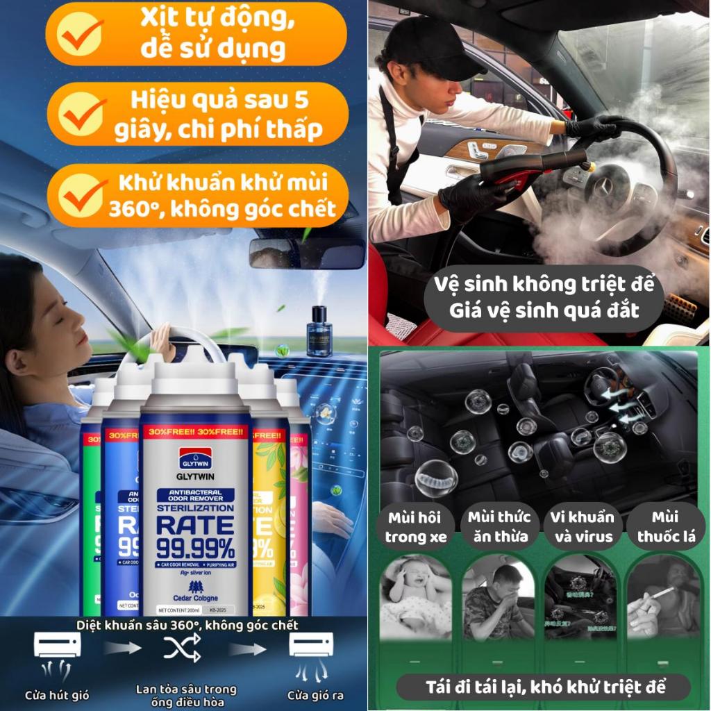 GLYTWIN Chai xịt khử mùi và 200ML khử trùng ô tô làm sạch không khí vệ sinh điềuhòa