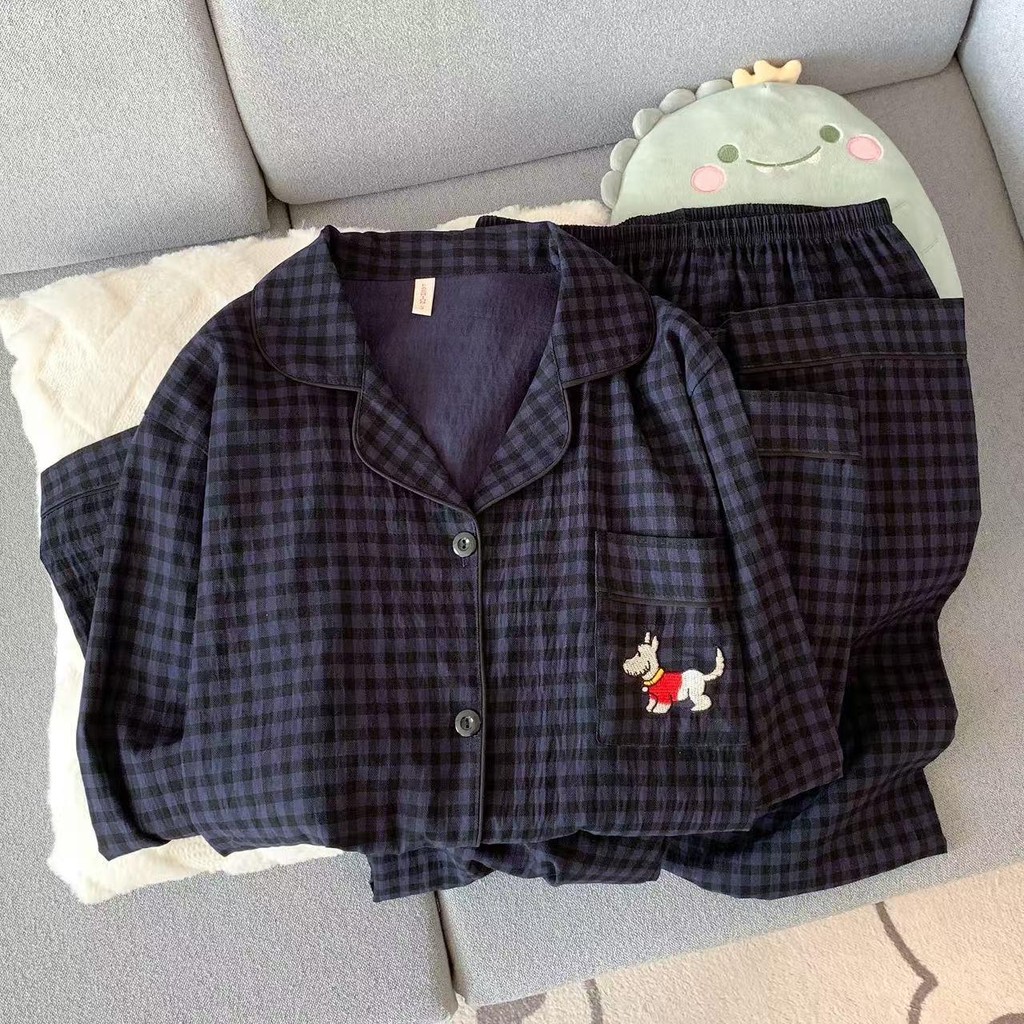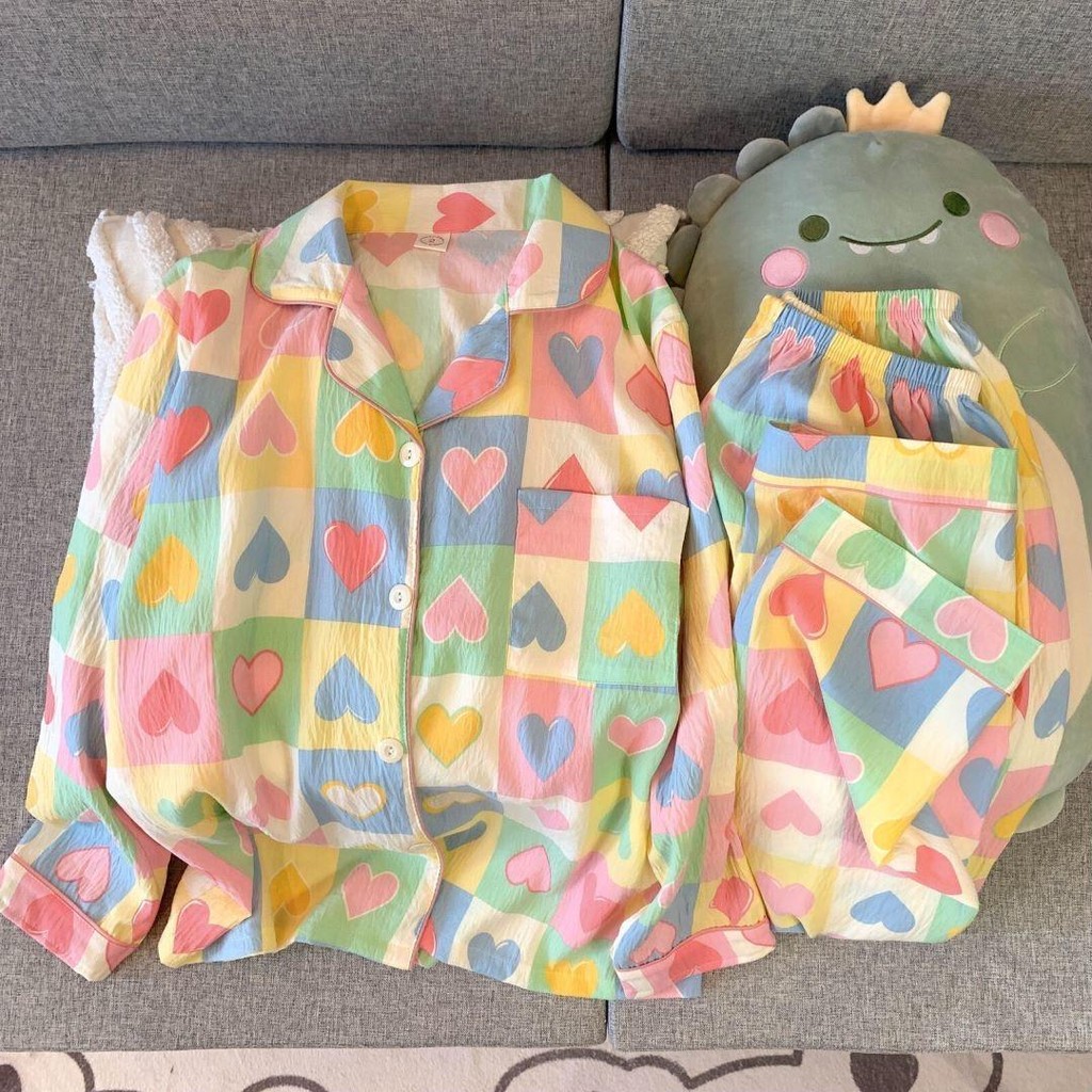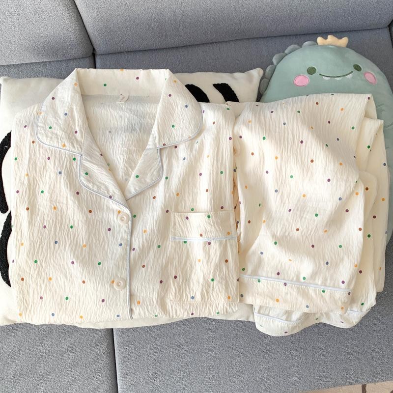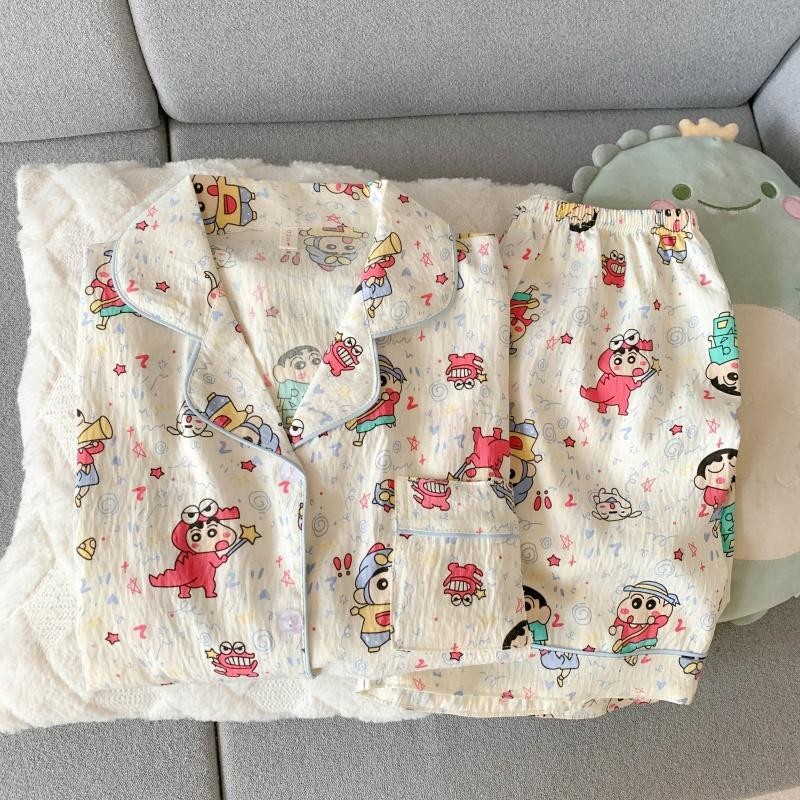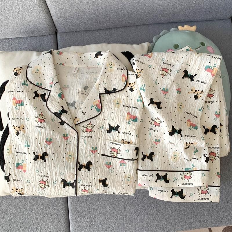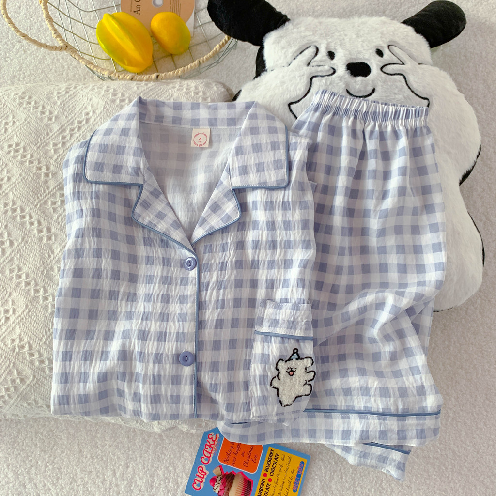 QHSW Bộ Đồ Ngủ Nữ satin Pink Pocket Cat Dài Tay Quần Nhập Khẩu