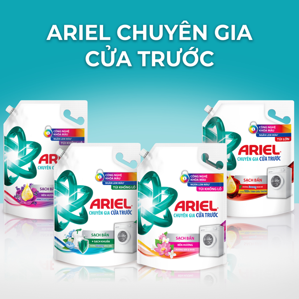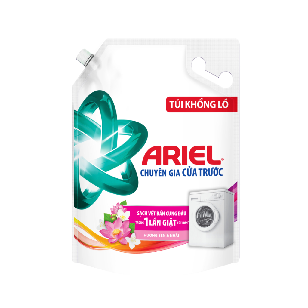 Nước Giặt Cửa Trước ARIEL Hương Sen & Nhài 3.7KG/ Nước giặt 10X giặt sạch túi 3.7KG