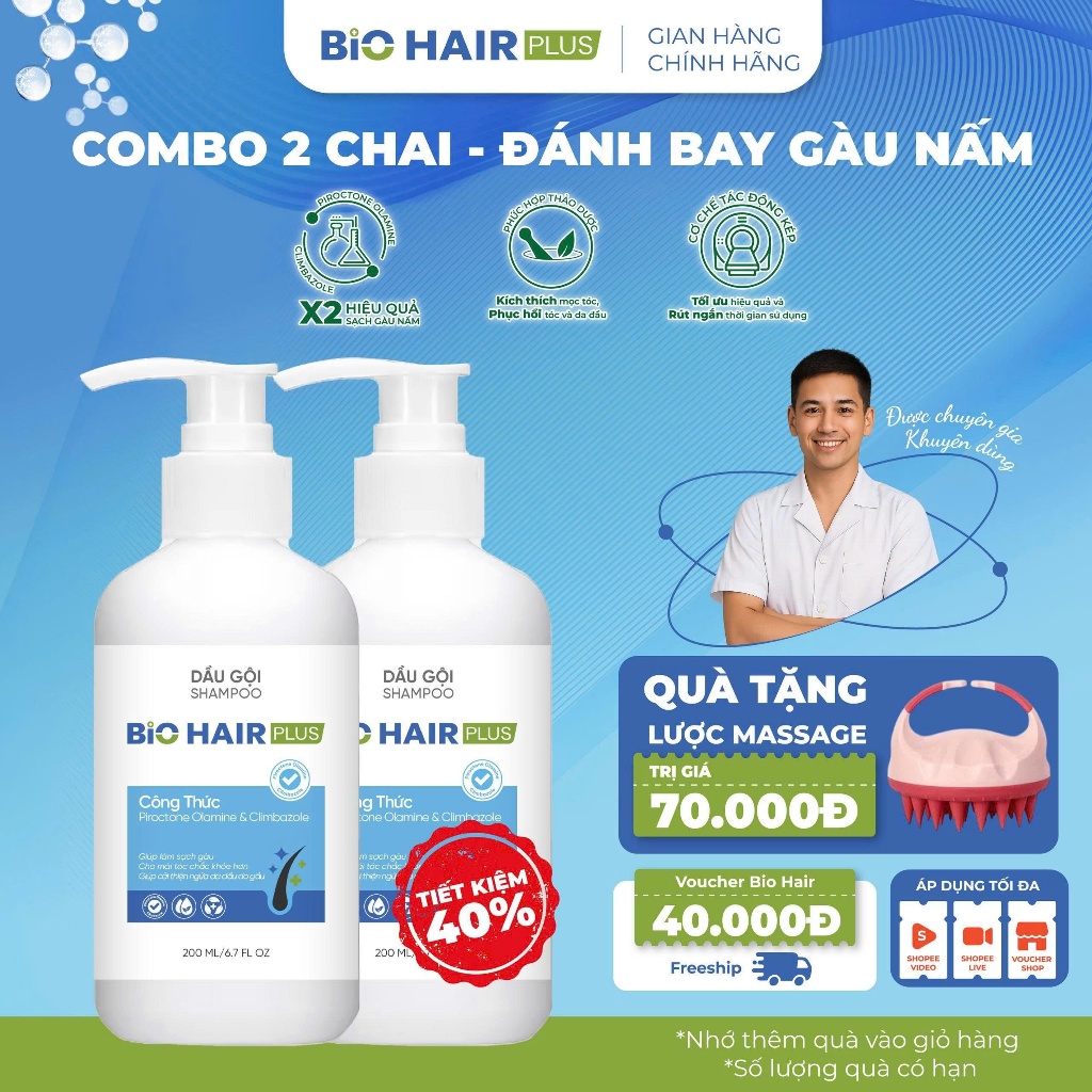 Dầu gội BIO HAIR PLUS chiết xuất dược liệu giúp giảm gàu, nấm và ngứa da đầu Combo 2 chai