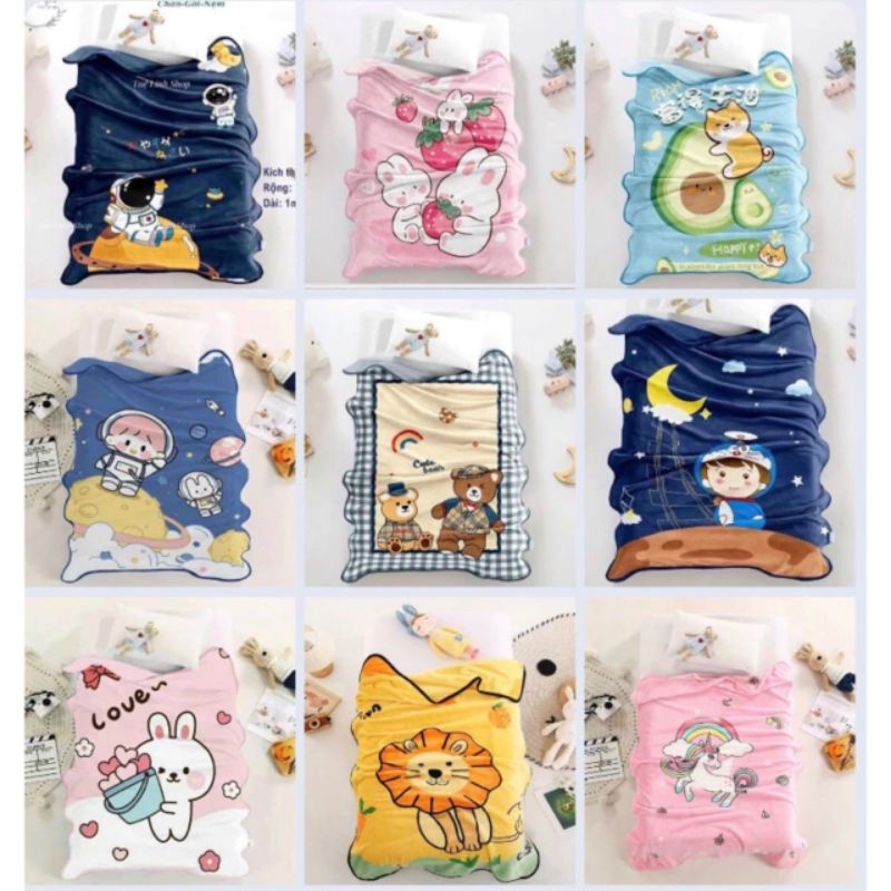 Chăn Lông Tuyết, Chăn Tuyết Nhung 100x140cm Mềm Mịn, Êm Mát Cho Bé Mang Đi Học, Nằm Phòng Điều Hoà, Hình Dễ Thương