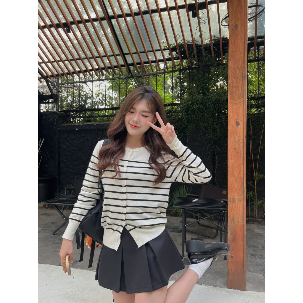 Áo Khoác Len Nữ, Áo Len Cardigan Kẻ Ngang Basic Nữ Phong Cách Hàn Quốc Hàng Chuẩn QC Loại 1 New 2025