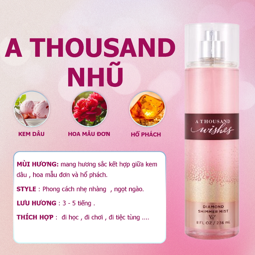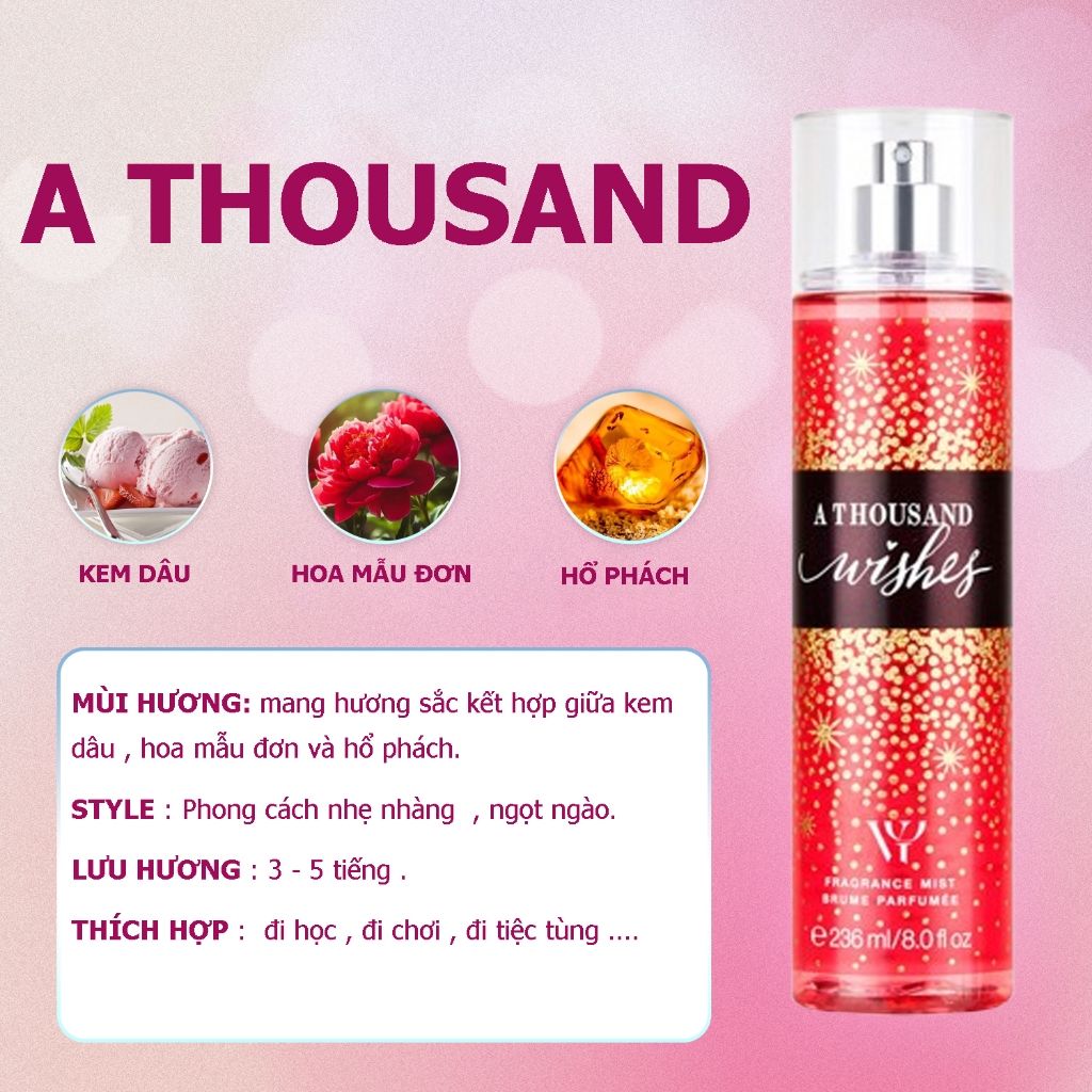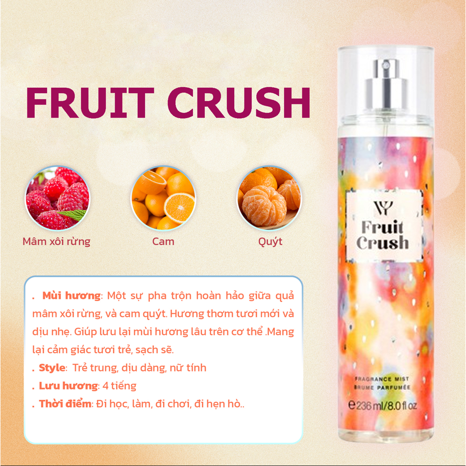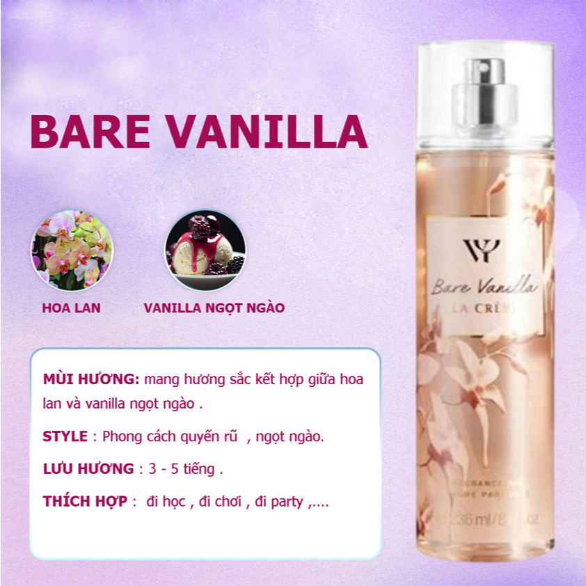 Xịt bodymist 236ml hương thơm quyến rũ, nữ tính, ngọt ngào..
