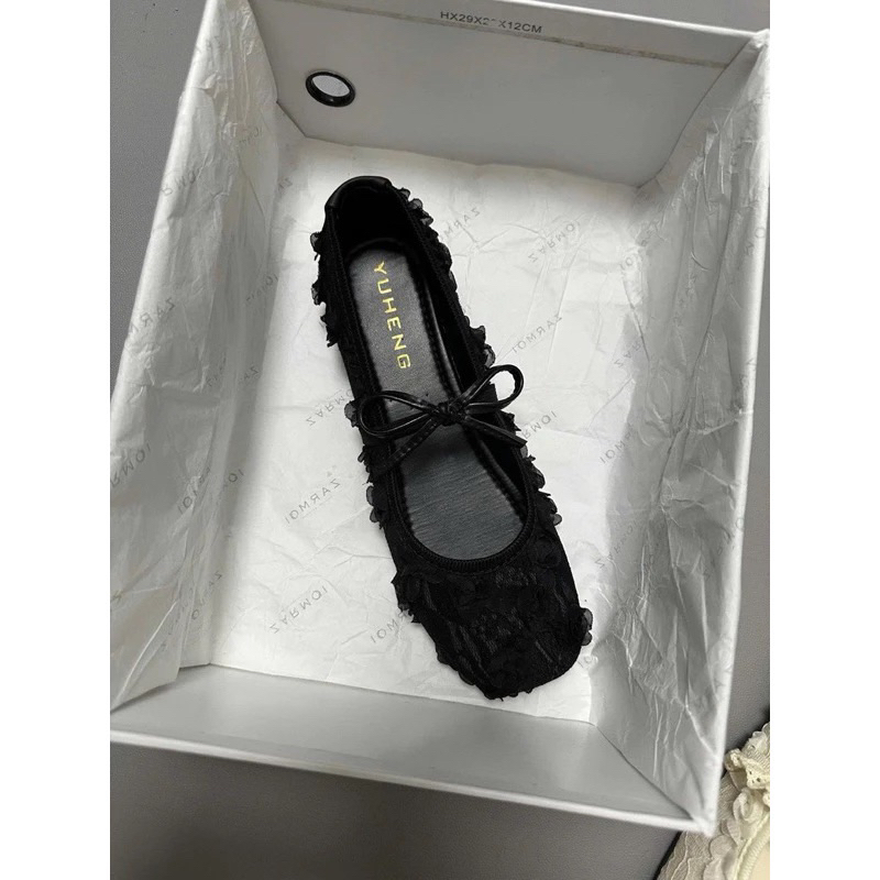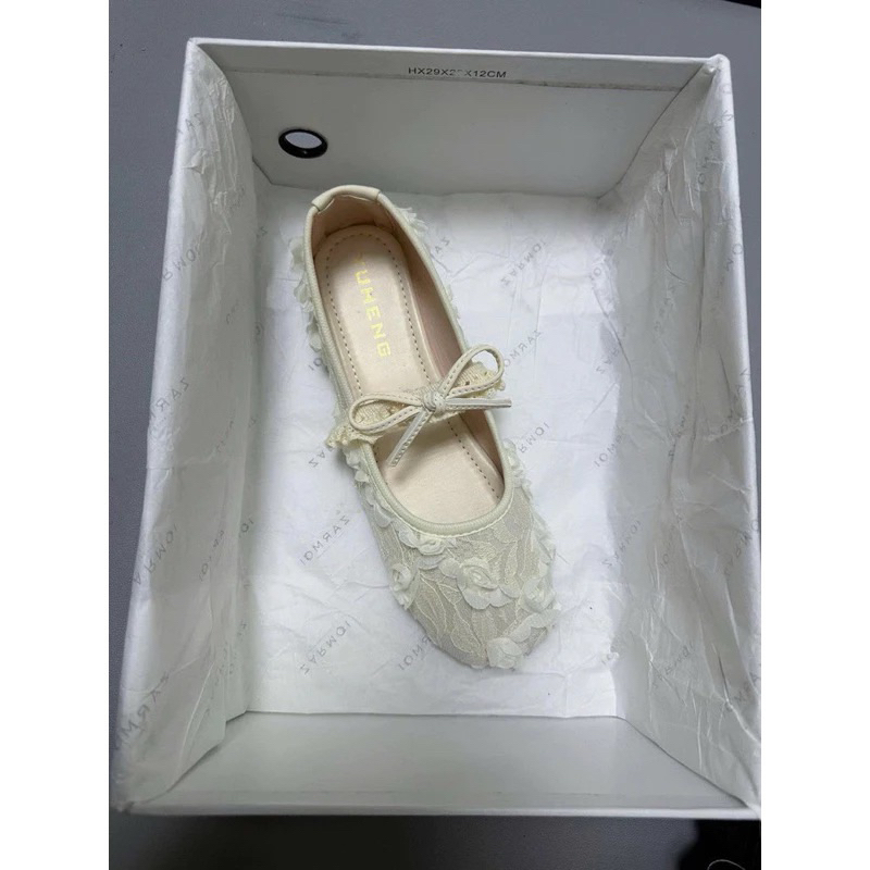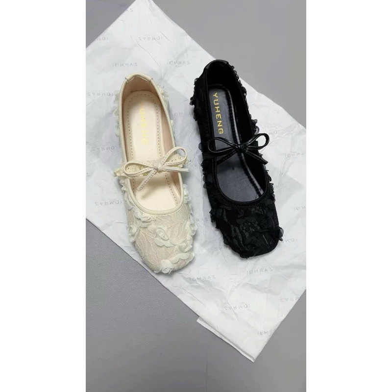 Giày bệt nữ phối ren hoa hồng quai nơ siêu xinh mã 12( chân gầy lùi size)