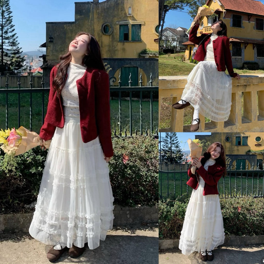 [HÀNG SẴN] Chân váy voan công chúa dáng dài phối bèo tầng”Lucy”