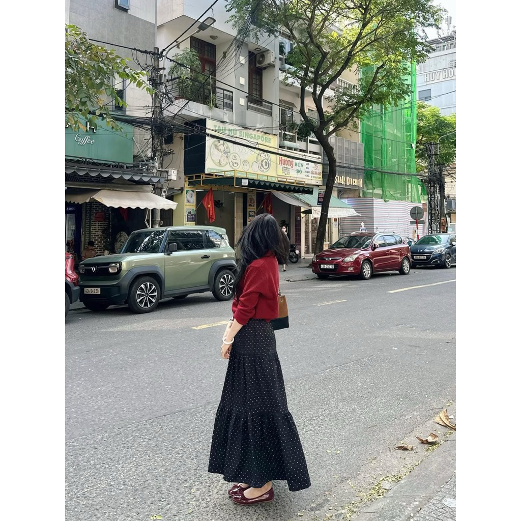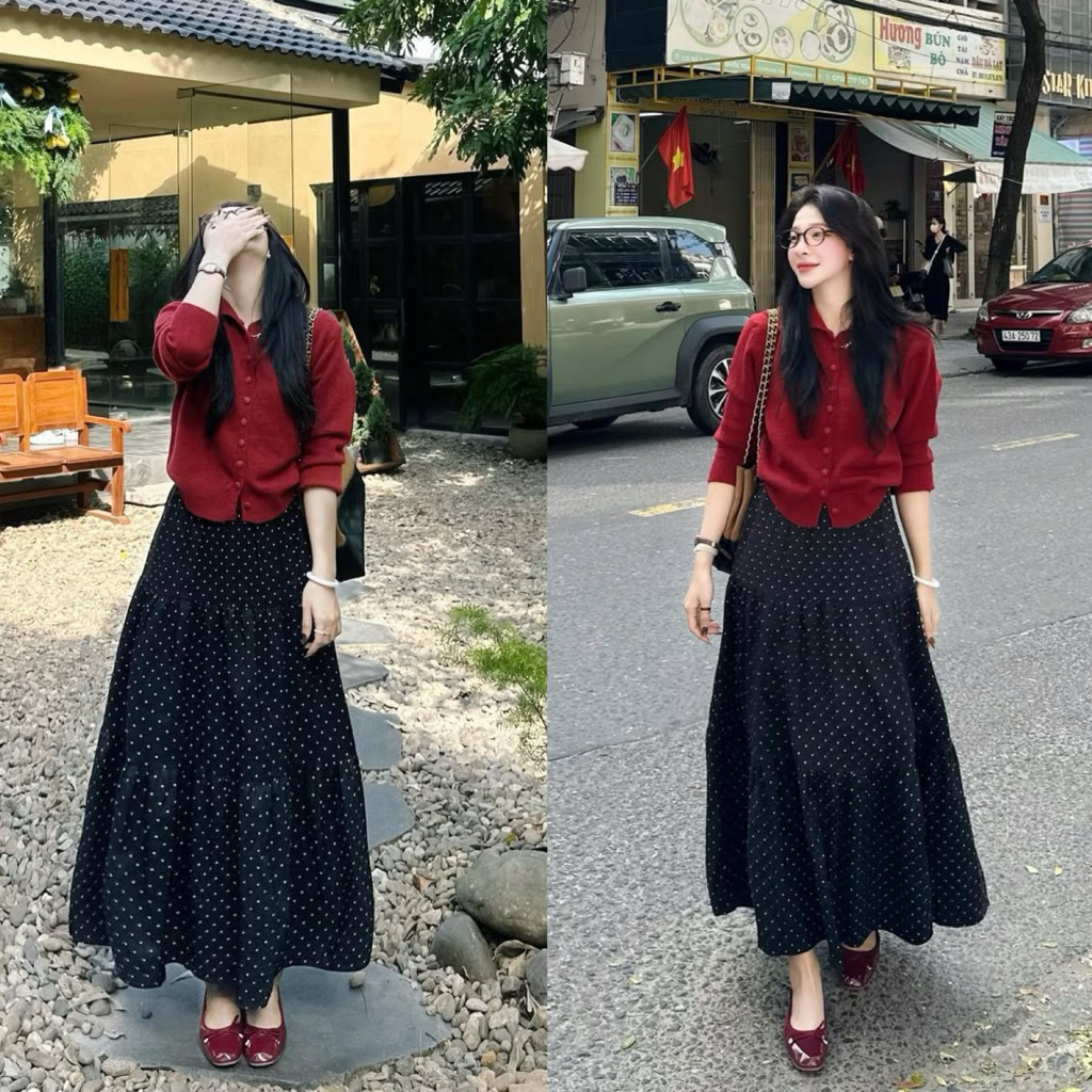 [HÀNG SẴN] Chân váy CHẤM BI 3 TẦNG chất liệu CÁT HÀN mềm mát cạp chun co giãn