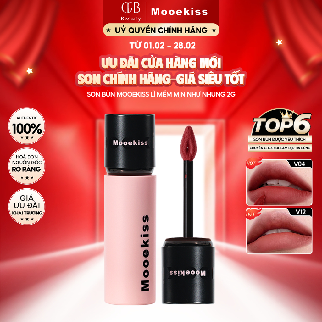 [MOOEKISS] Son kem lì dạng bùn không gây khô da dưỡng ẩm lâu trôi làm sáng tone da V01 2g (Hàng chính hãng)