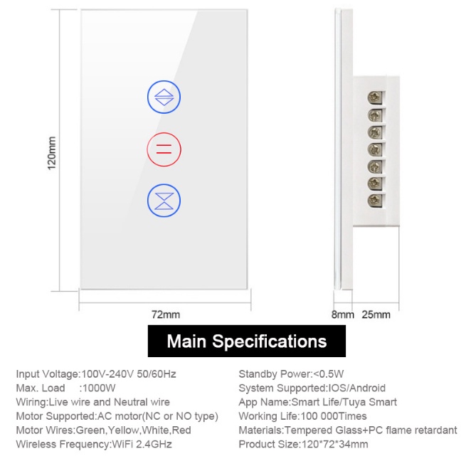 Công Tắc Cửa Cuốn WiFi+ Bluetooth Điều Khiển Qua Điện Thoại App Tuya