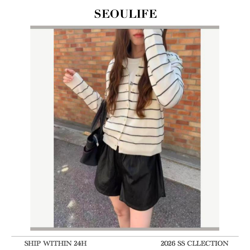 SEOULIFE | Áo sơ mi dệt kim tay áo dài, Cardigan sọc đẹp của phụ nữ, Áo sơ mi mùa thu mùa đông đẹp của phụ nữ 2026, Sọc khối màu sắc, Trọng lượng nhẹ, Cần thiết Đẹp của phụ nữ