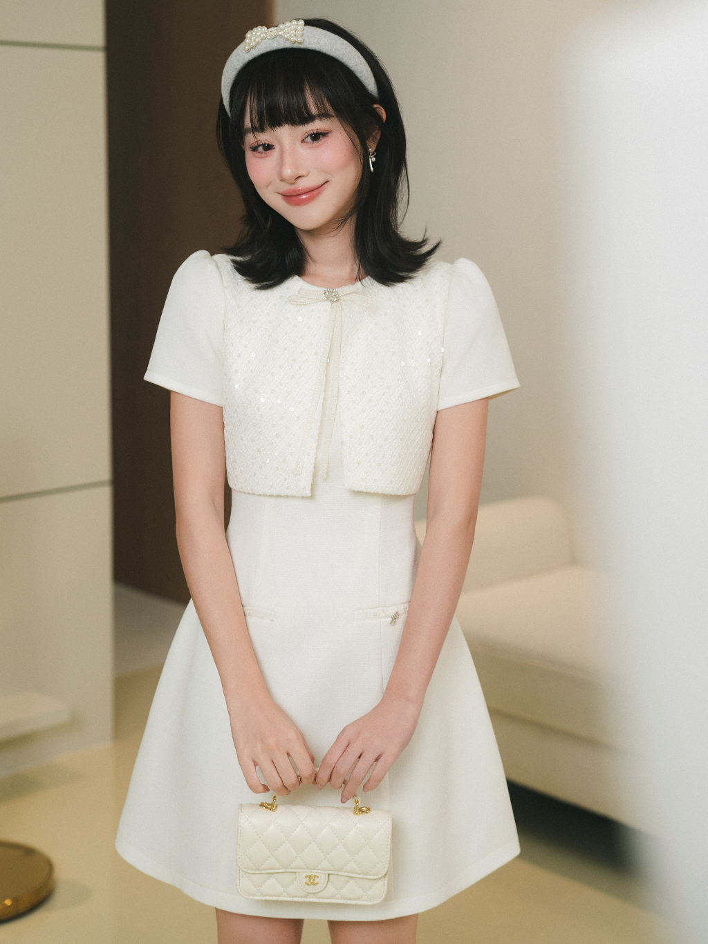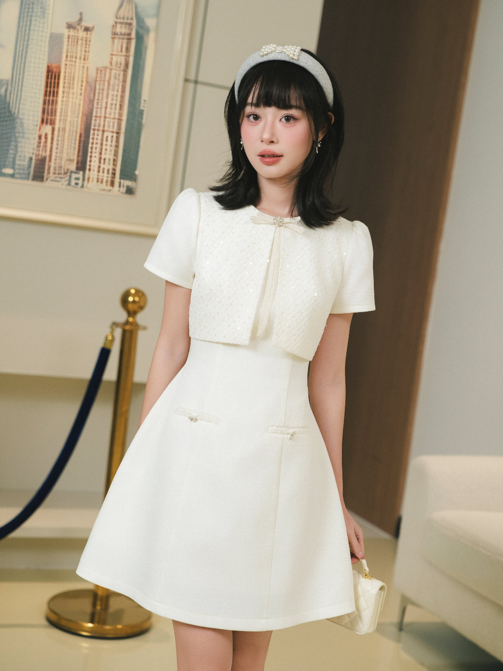 ZAMYSHOP - Váy thiết kế dạ đáp xẻ đính nơ, váy xinh đi chơi, đi tiêc nhẹ