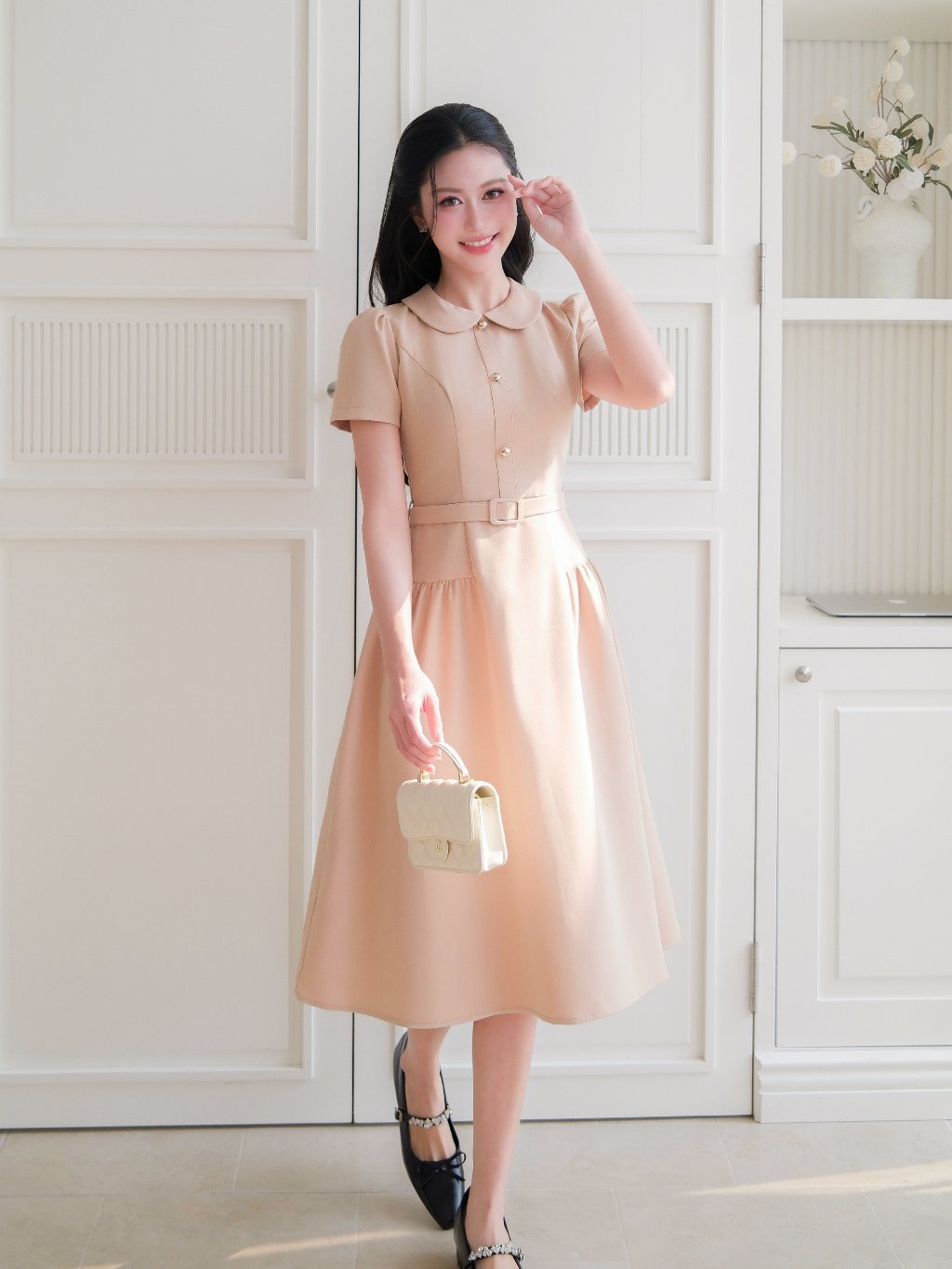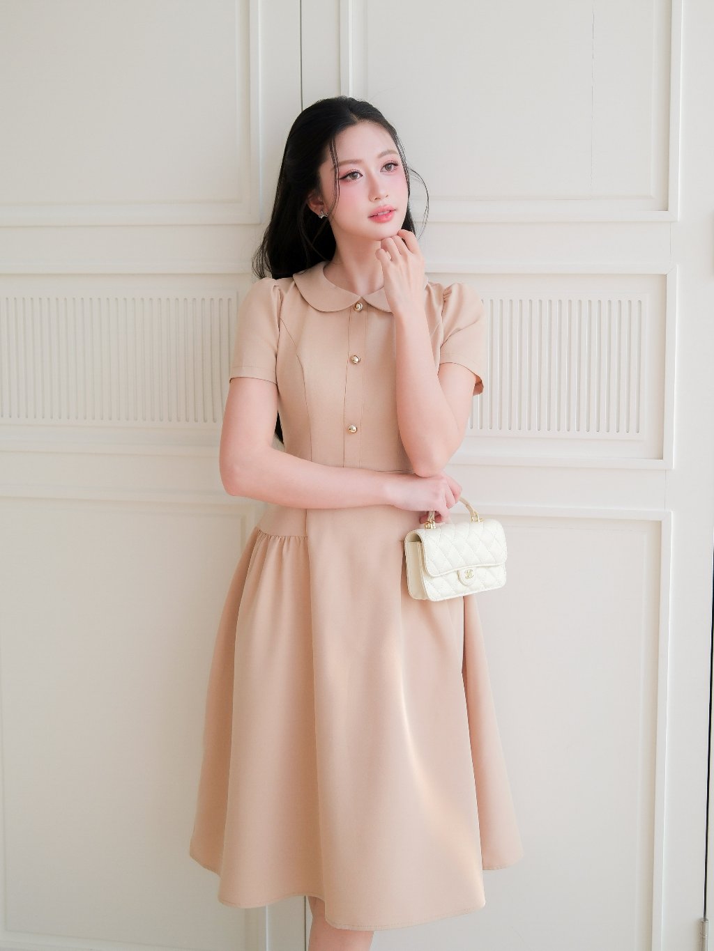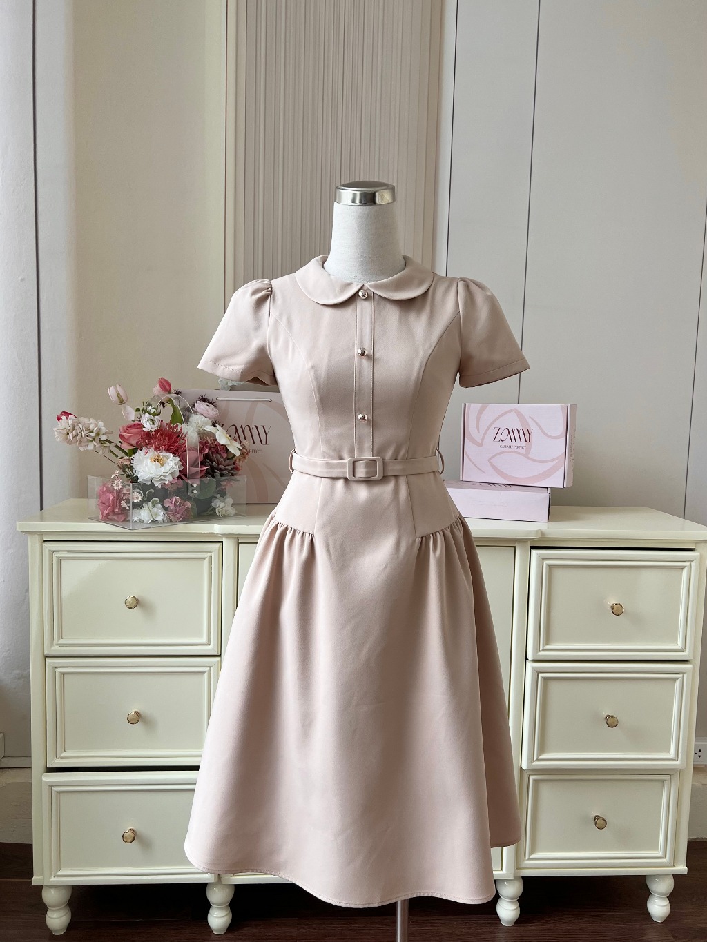 ZAMYSHOP - Váy thiết kế kaki cổ sen dáng dài, váy xinh đi làm, đi chơi, thanh lịch, basic