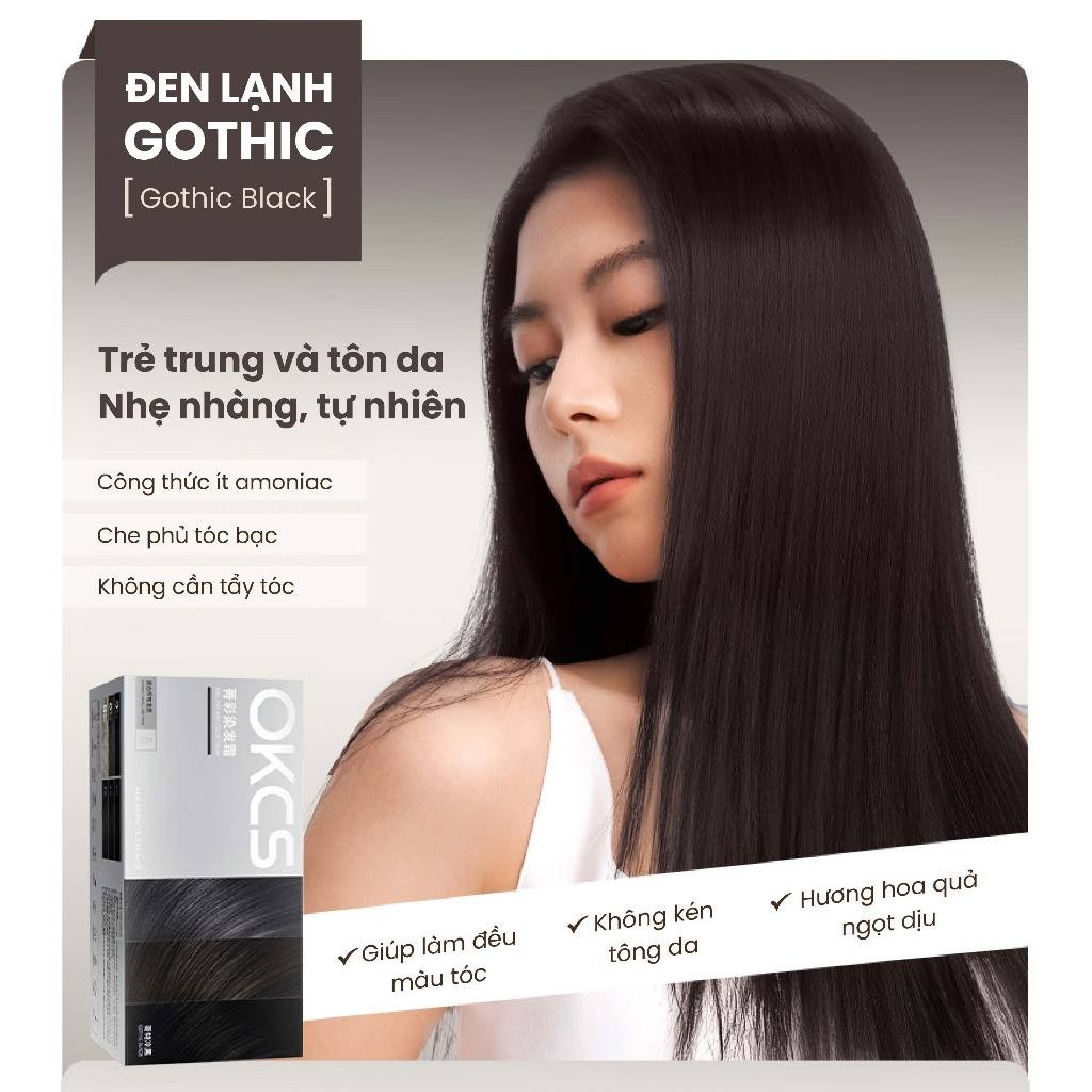 Kem nhuộm tóc tại nhà OKCS màu Đen Lạnh Gothic – Phủ bạc tự nhiên, không cần tẩy, giữ màu bền đẹp, an toàn cho tóc