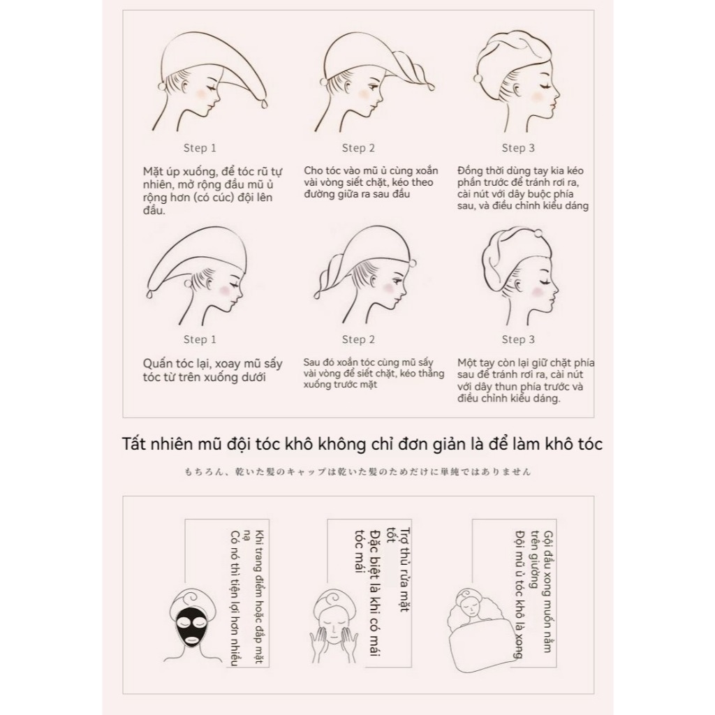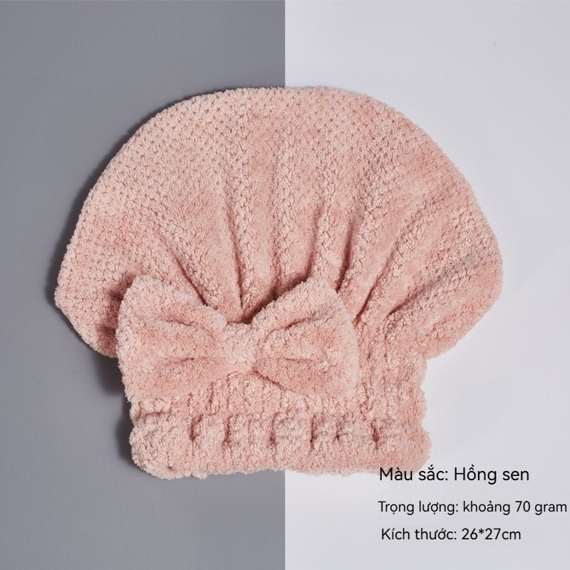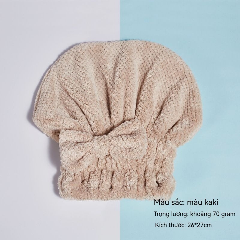 Mũ ủ tóc công chúa nơ Coral fleece caro dứa Thấm nước mạnh, khô nhanh