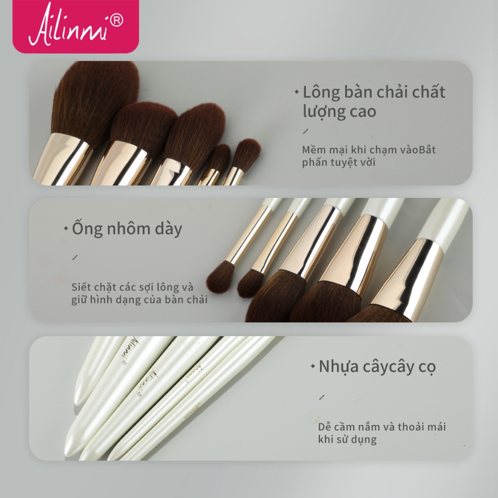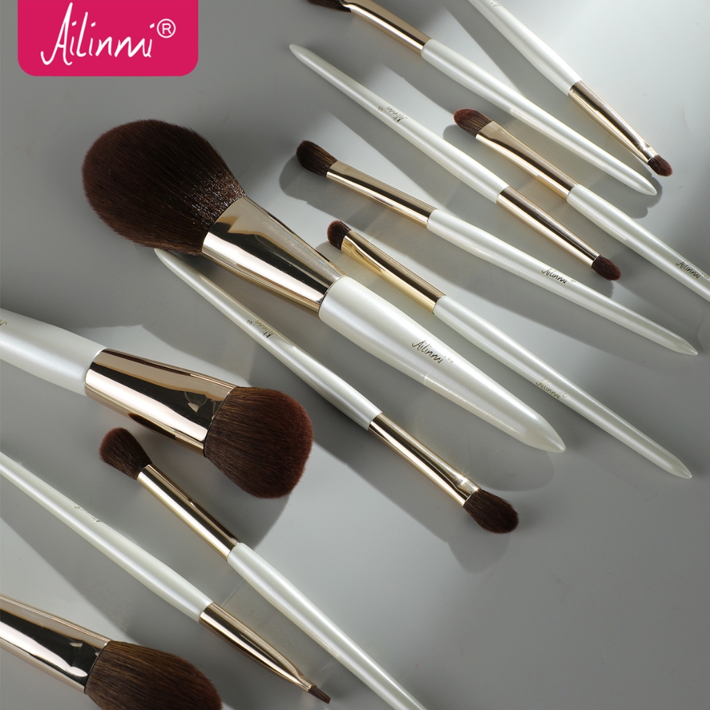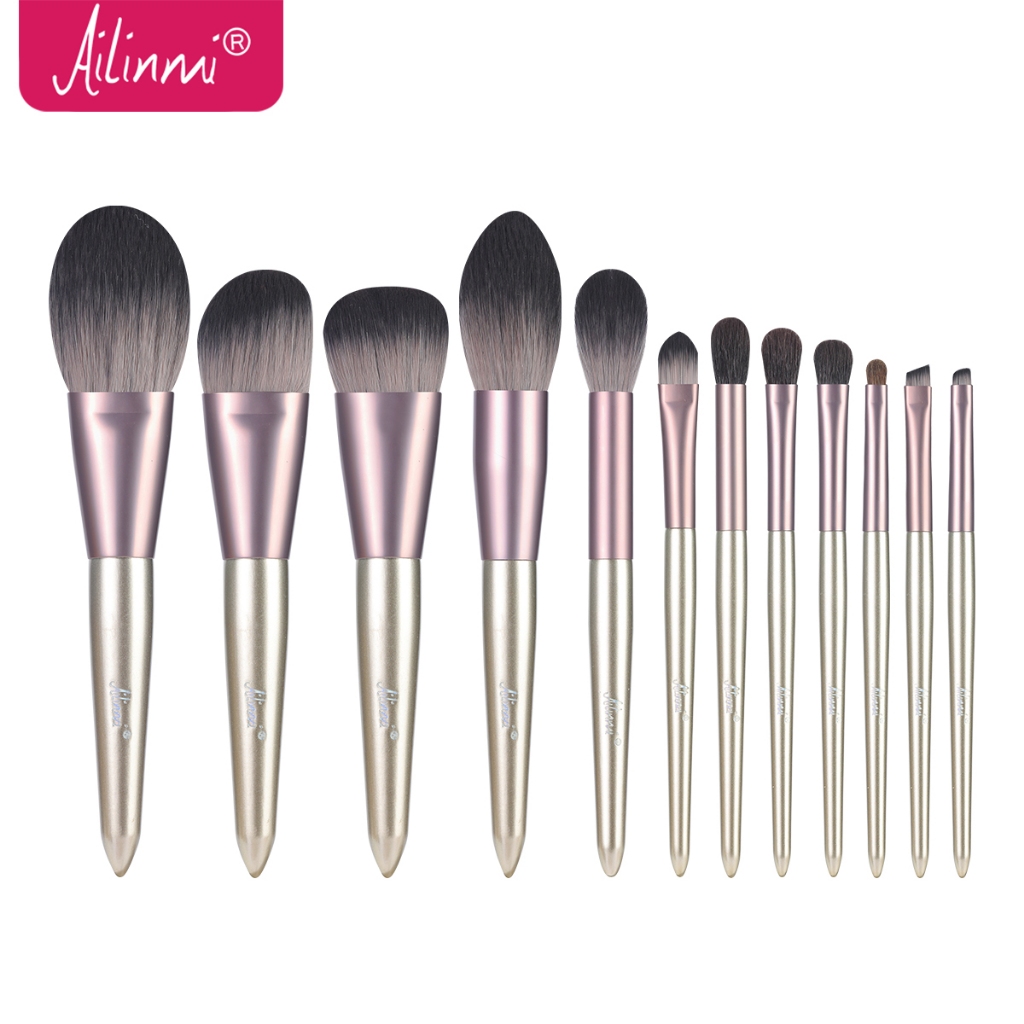 cọ trang điểm Ailinmi, Bộ 12 cọ trang điểm tóc bằng sợi tinh tế, đầy đủ lông mềm, thích hợp cho mọi làn da