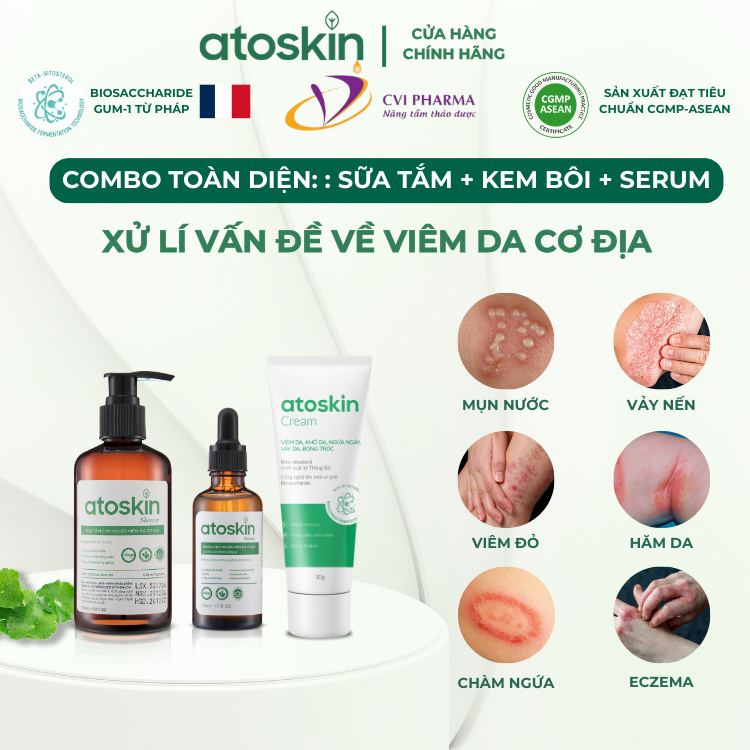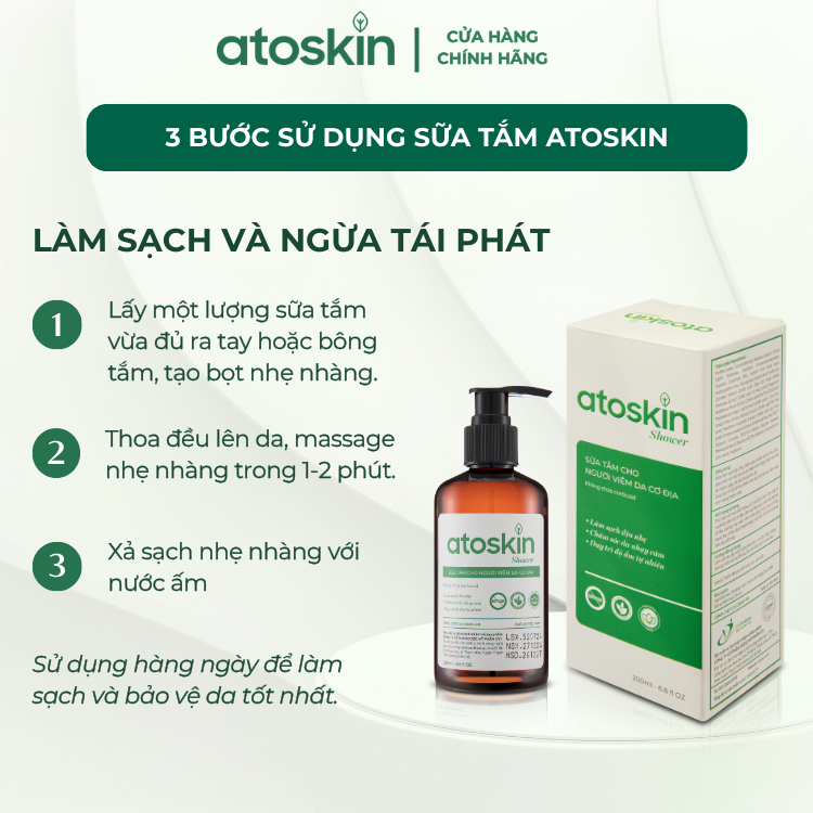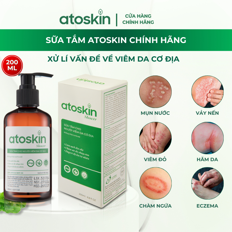 Sữa Tắm Viêm da cơ địa Atoskin 200ml - Hỗ trợ làm sạch da, Giảm mẩn đỏ, Giảm ngứa ngáy giúp da khoẻ