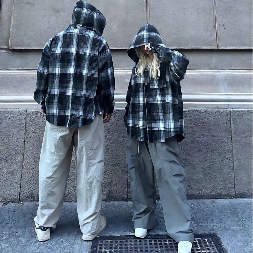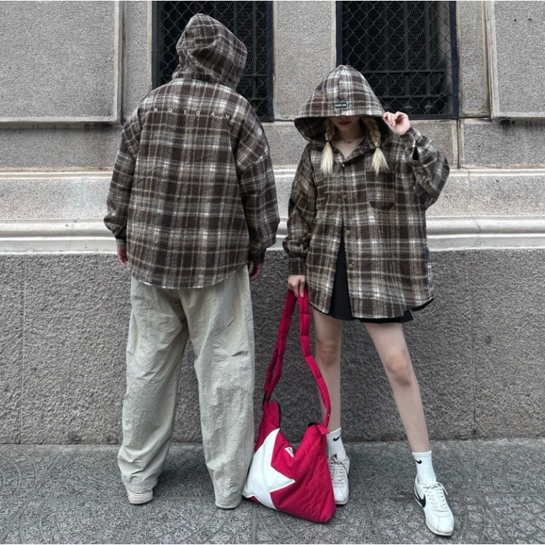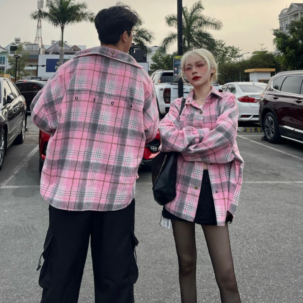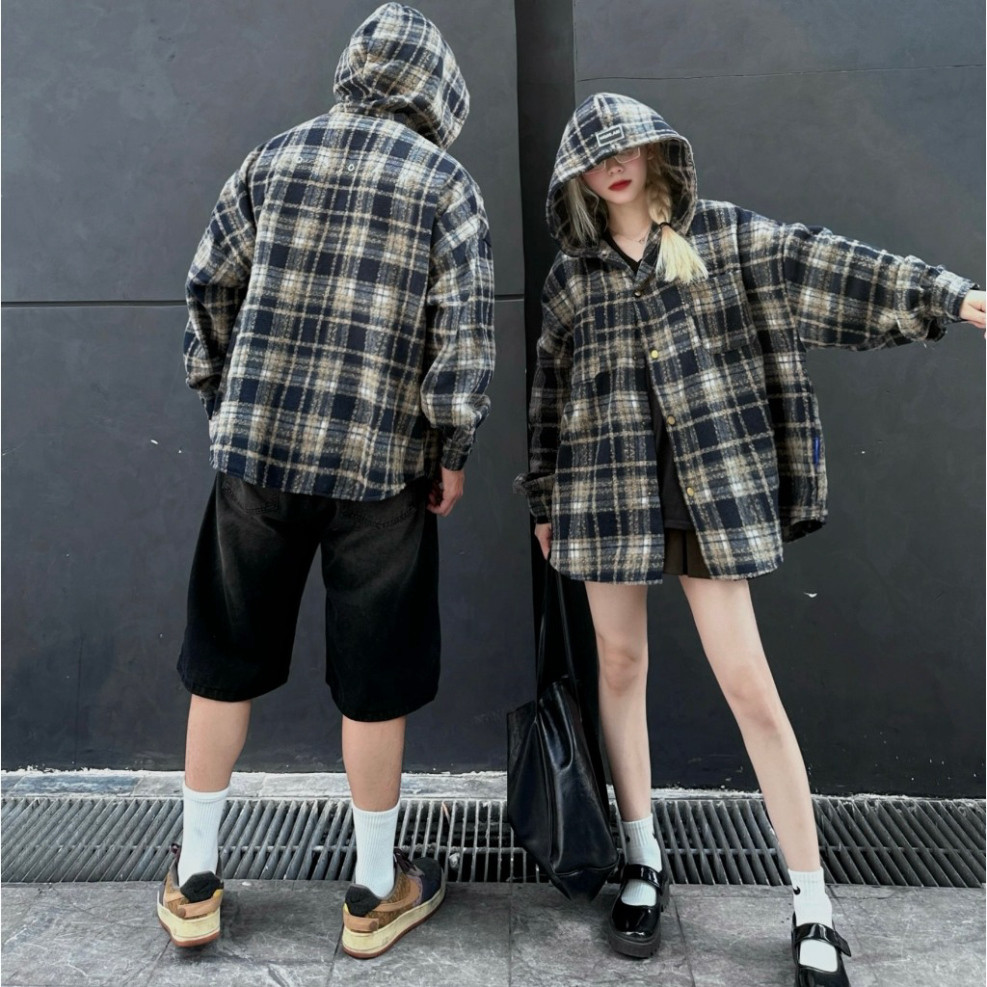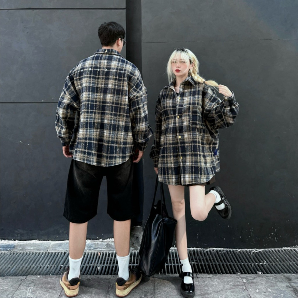Áo khoác chống nắng nam nữ Flannel Form rộng chất vải dạ cotton kẻ caro dày dặn- DOKYJI