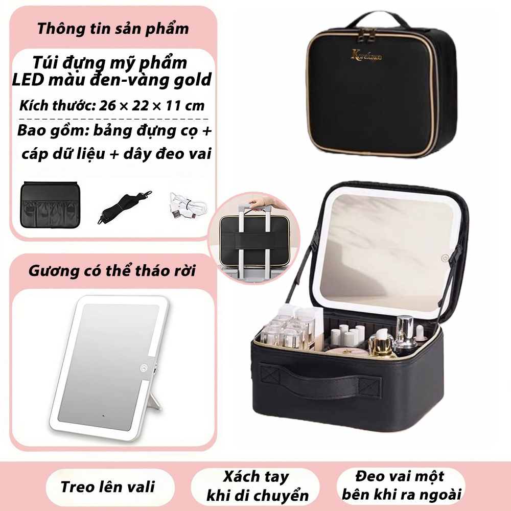 KoreluxcoTúi đựng mỹ phẩm đa năng chống va đập, chống thấm nước có vách ngăn điều chỉnh được