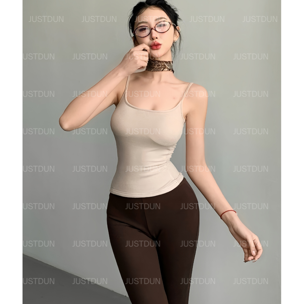 ( ÁO 2 LỚP không mút ) Áo Hai Dây Nữ Basic Ôm Body Chất Cotton Lông Mịn Tôn Dáng JUSTDUN 103