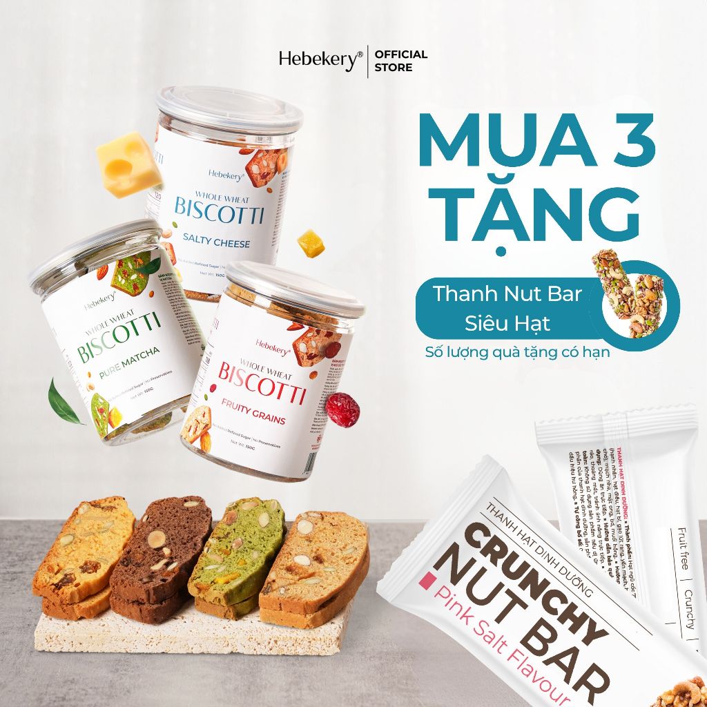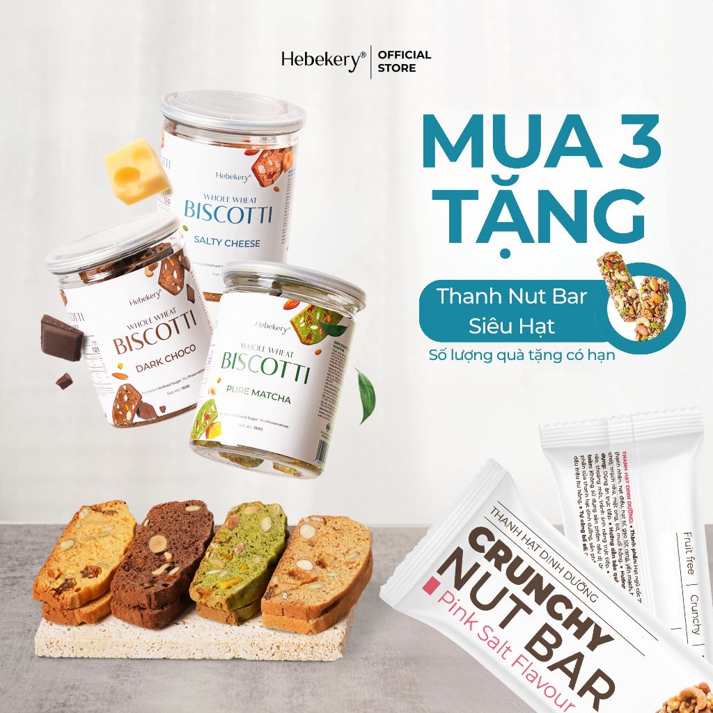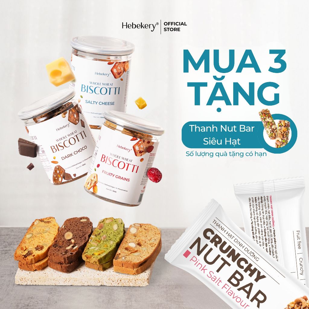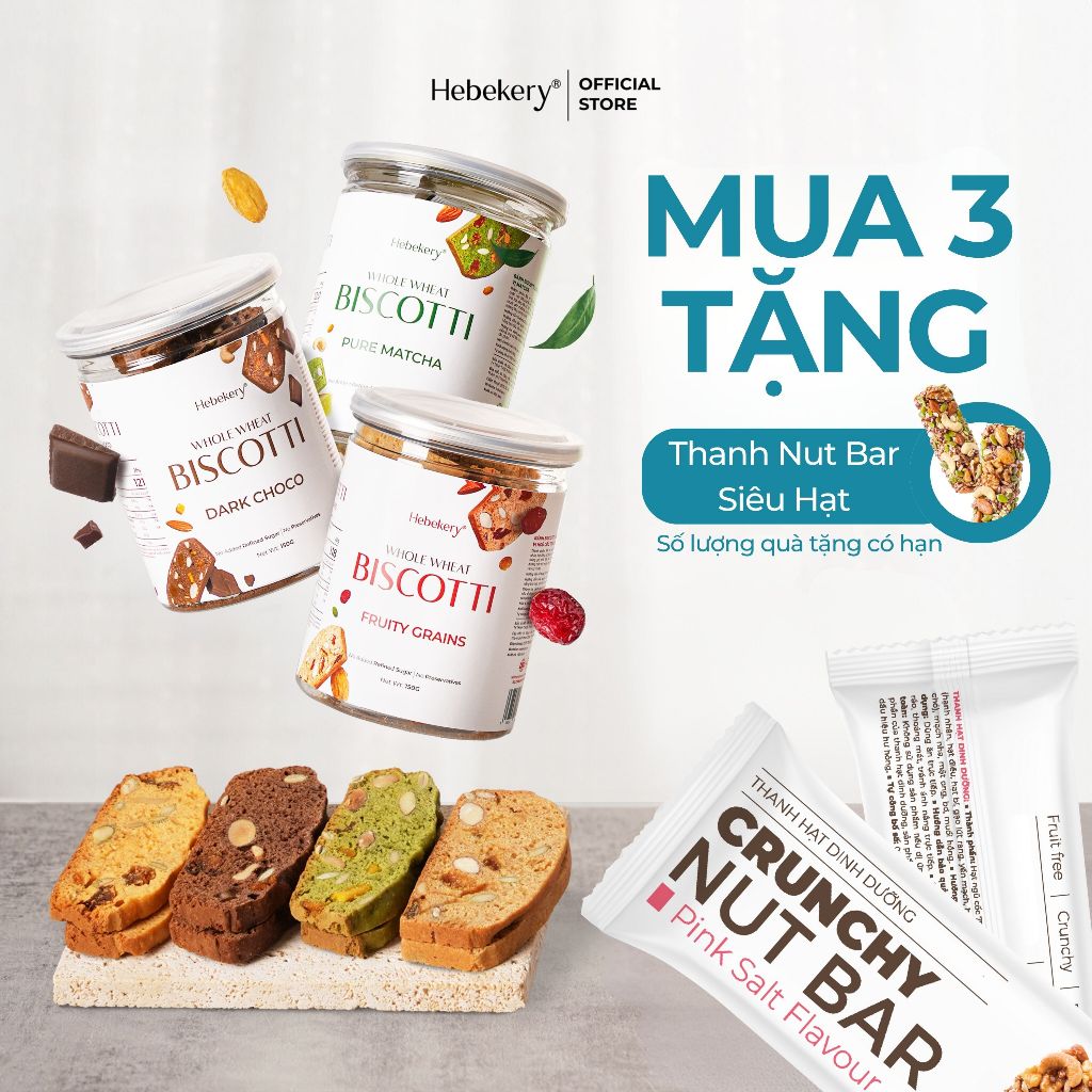 [MUA 3 TẶNG 1] COMBO 3 Hũ Biscotti Ăn Kiêng Nguyên Cám Low Calories (450g) - Bánh Ngũ Cốc Ăn Vặt Lành Mạnh Hebekery