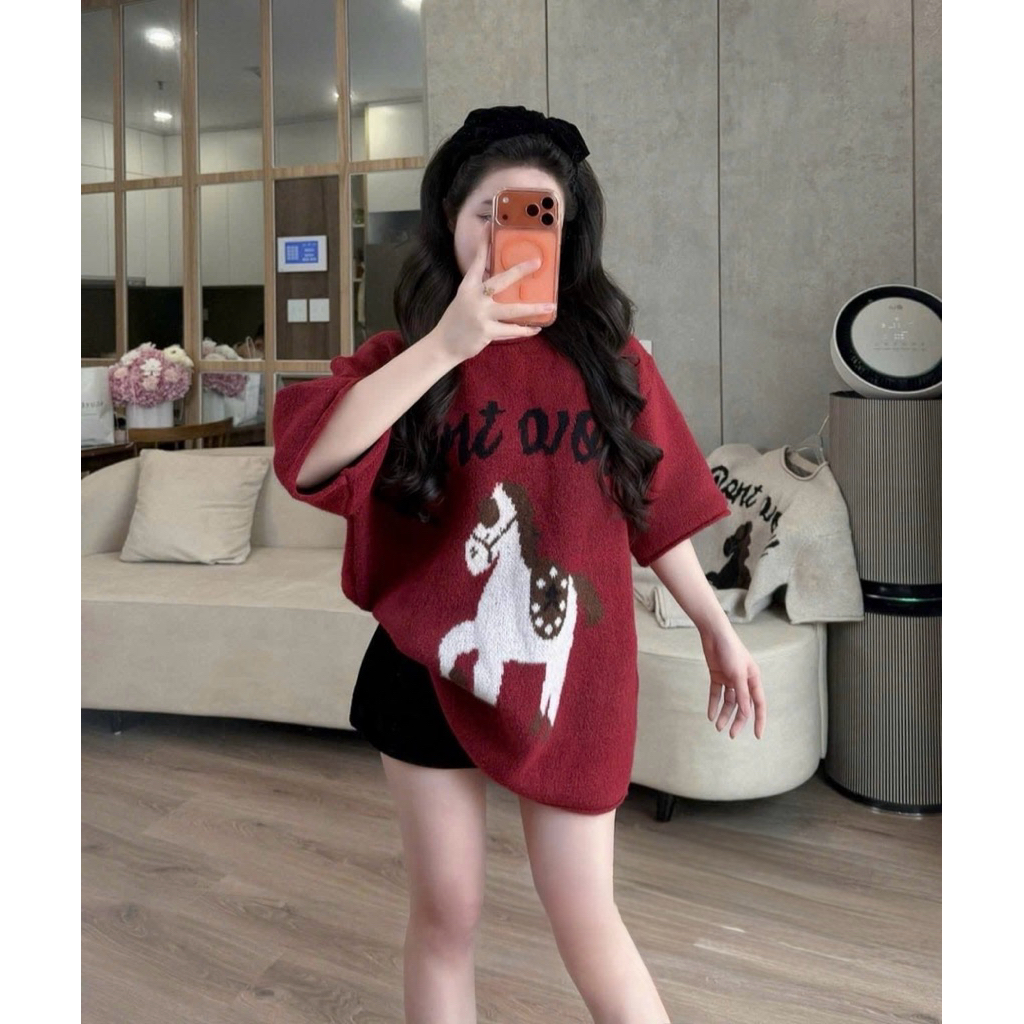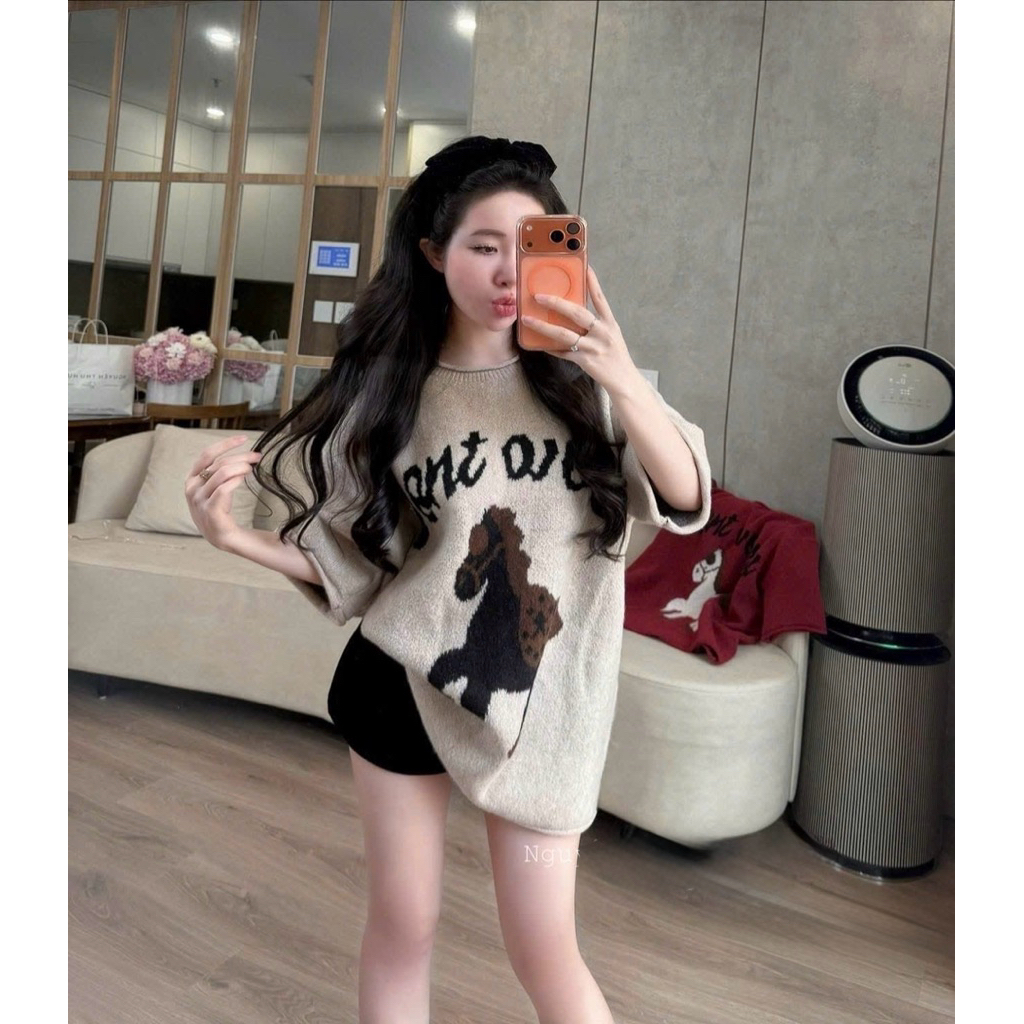 •𝙆𝙞𝙣𝙜𝙨𝙝𝙤𝙥𝙗𝙚𝙖𝙪𝙩𝙮•Áo Phông Len Tay Lửng Ngựa QC