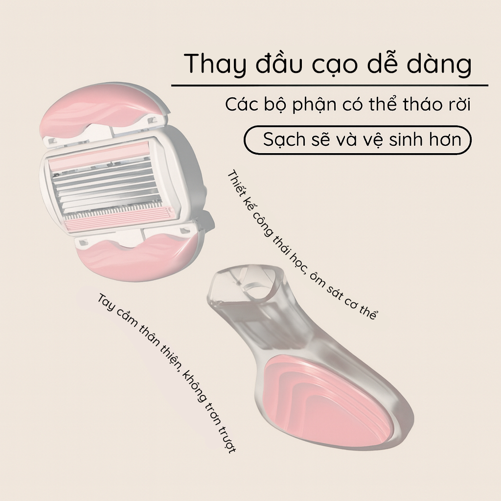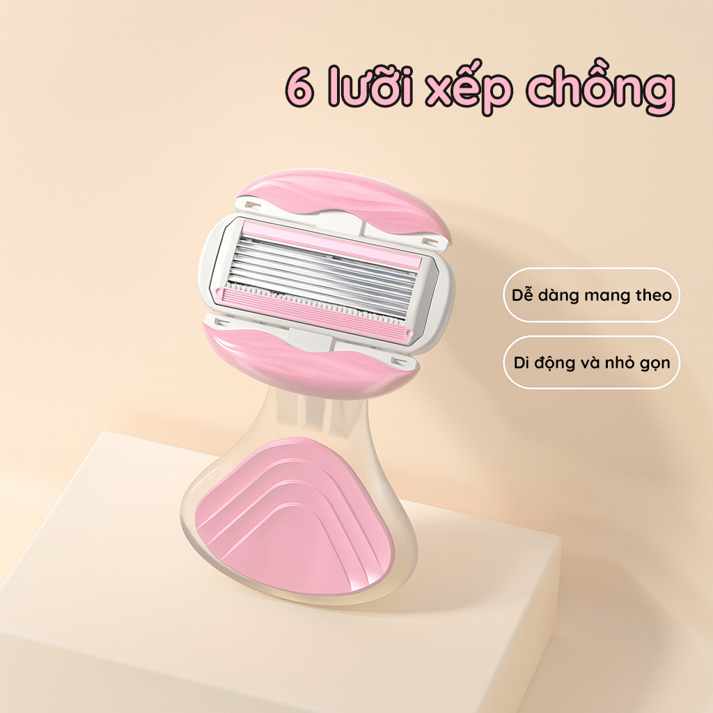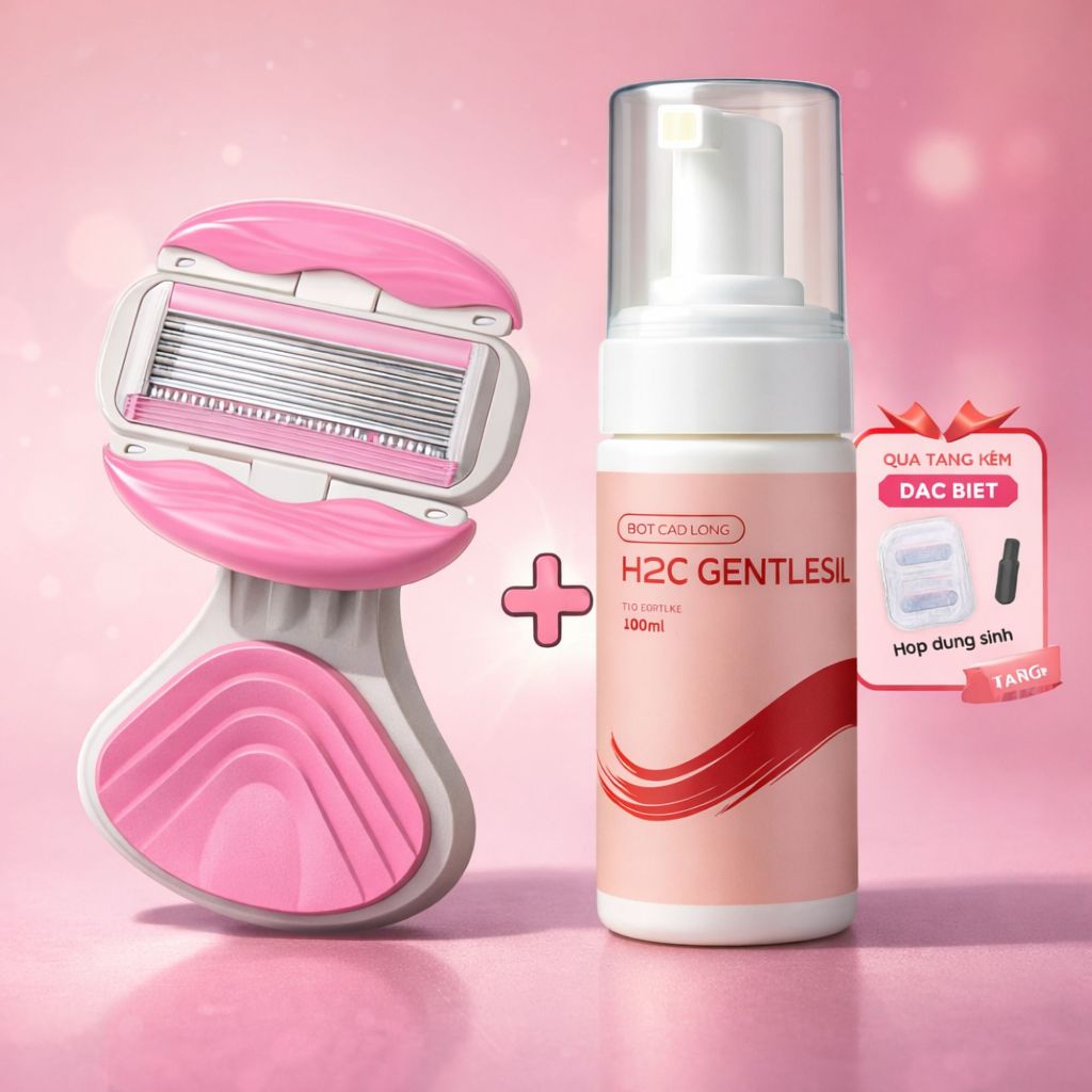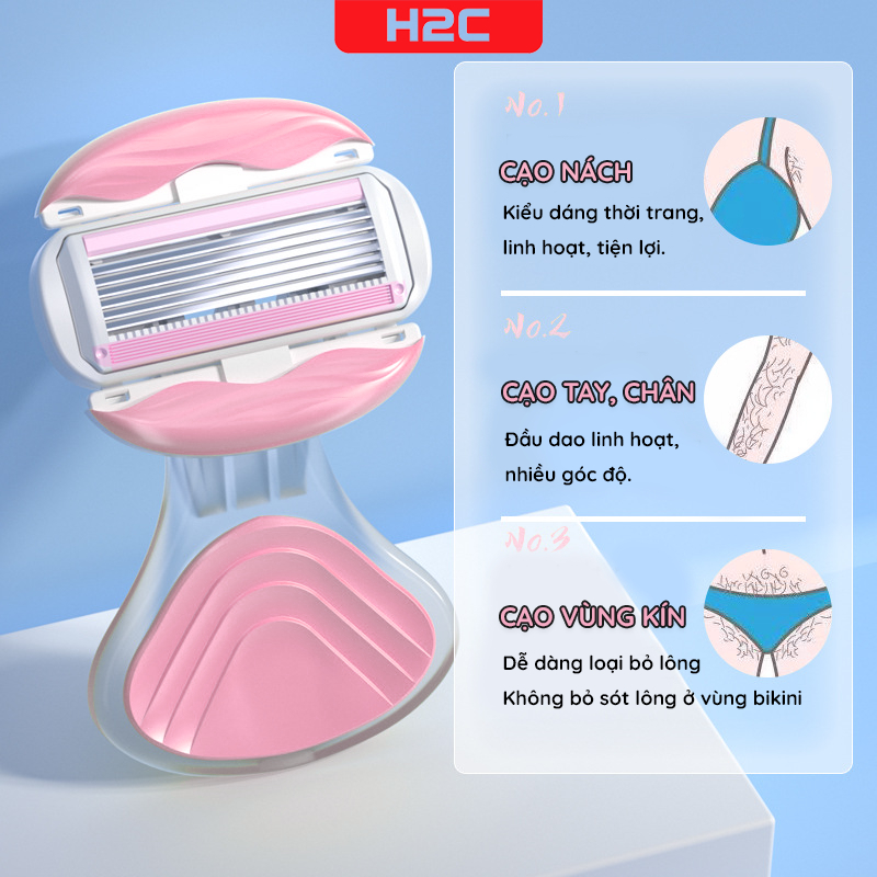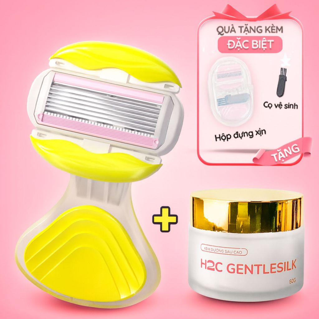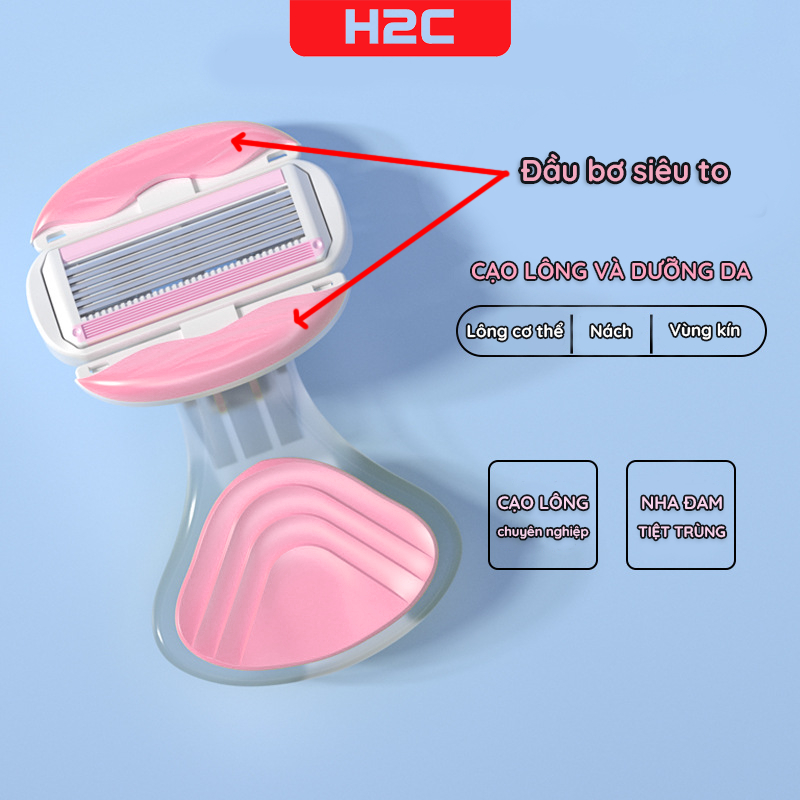 Dao cạo nữ, dao cạo bikini H2C Gentlesilk đầu bơ venus spa 6 lưỡi siêu cao cấp có che tên