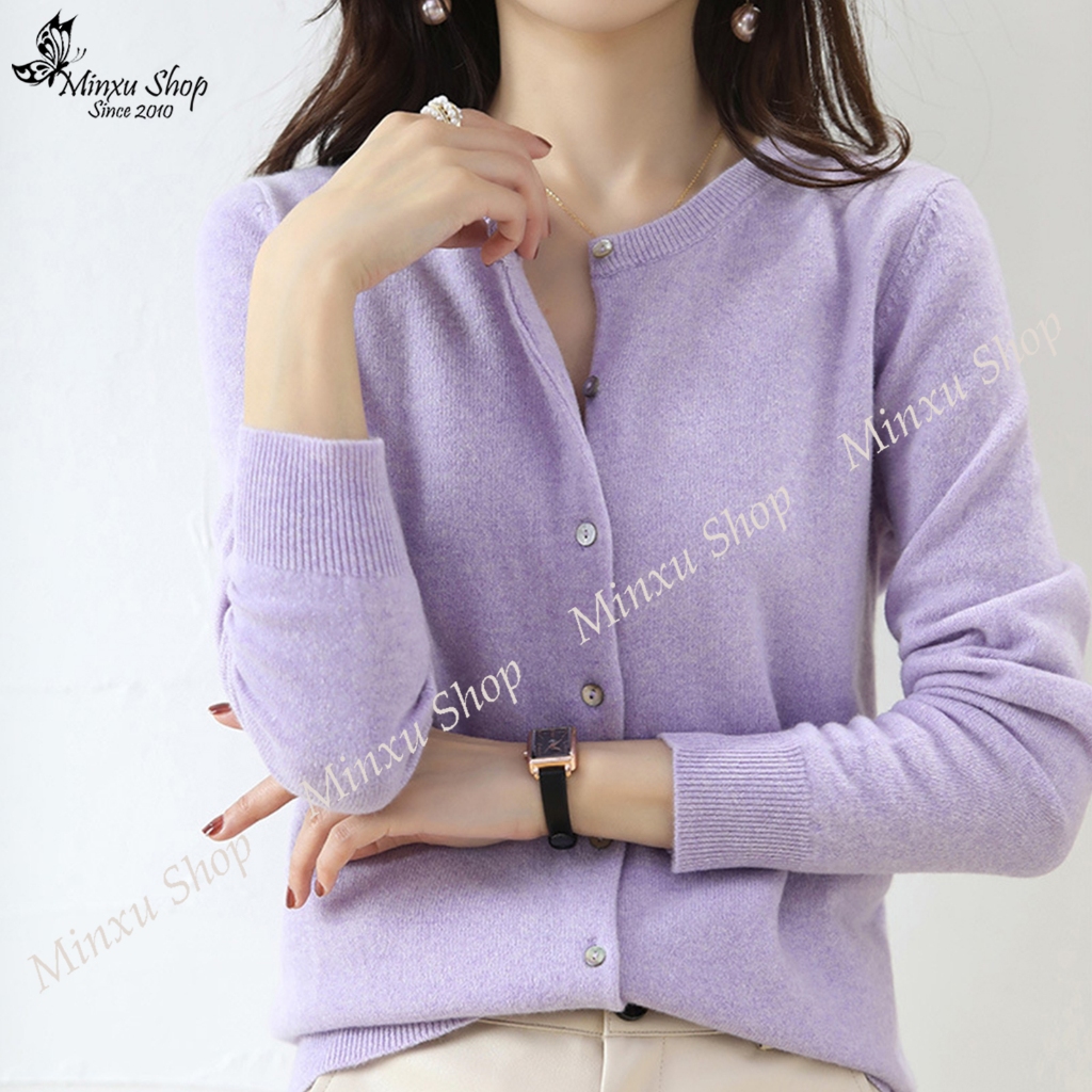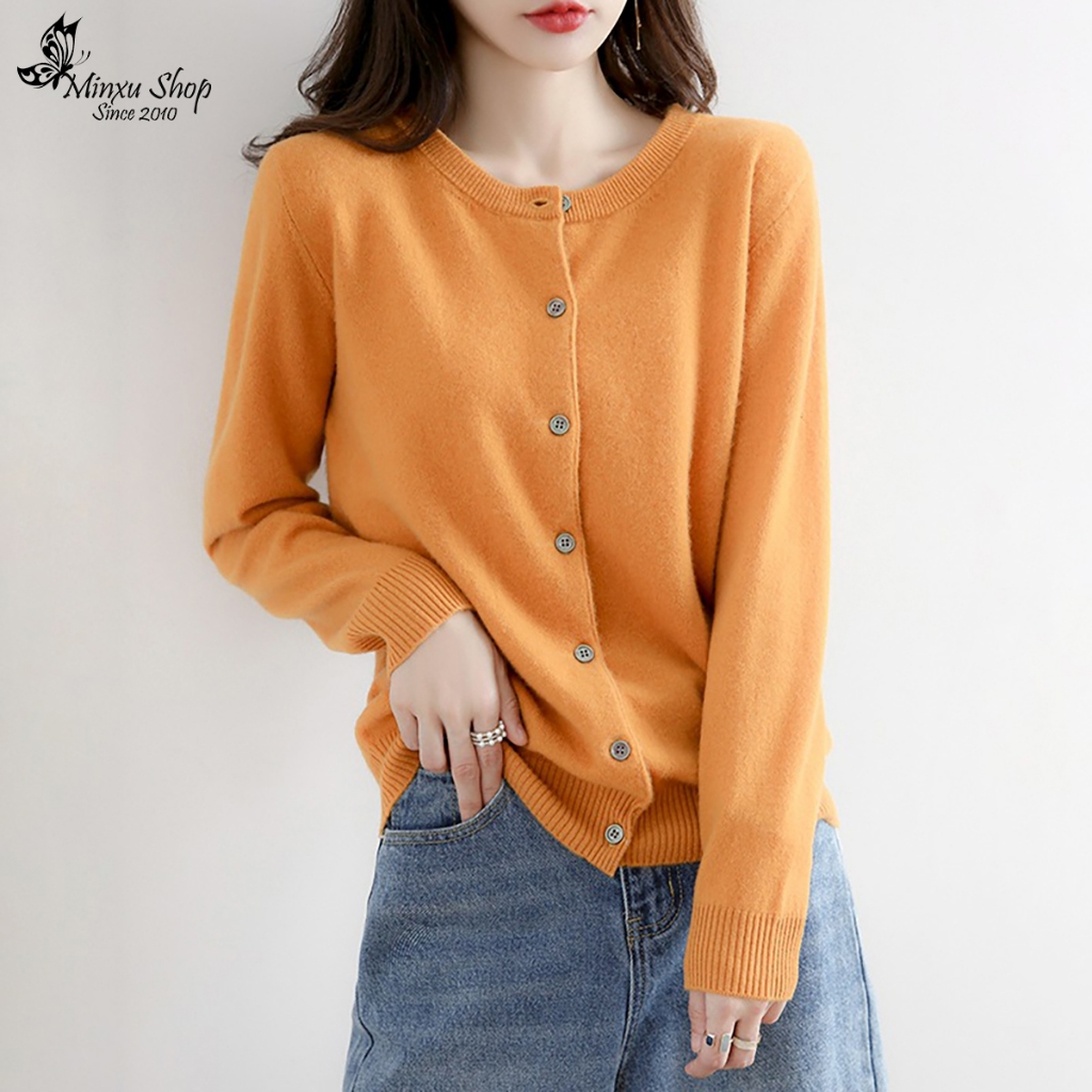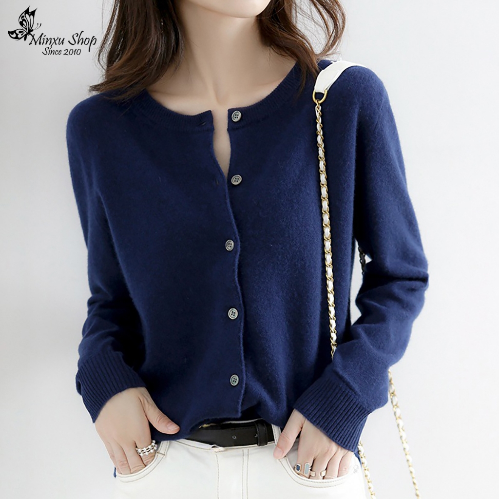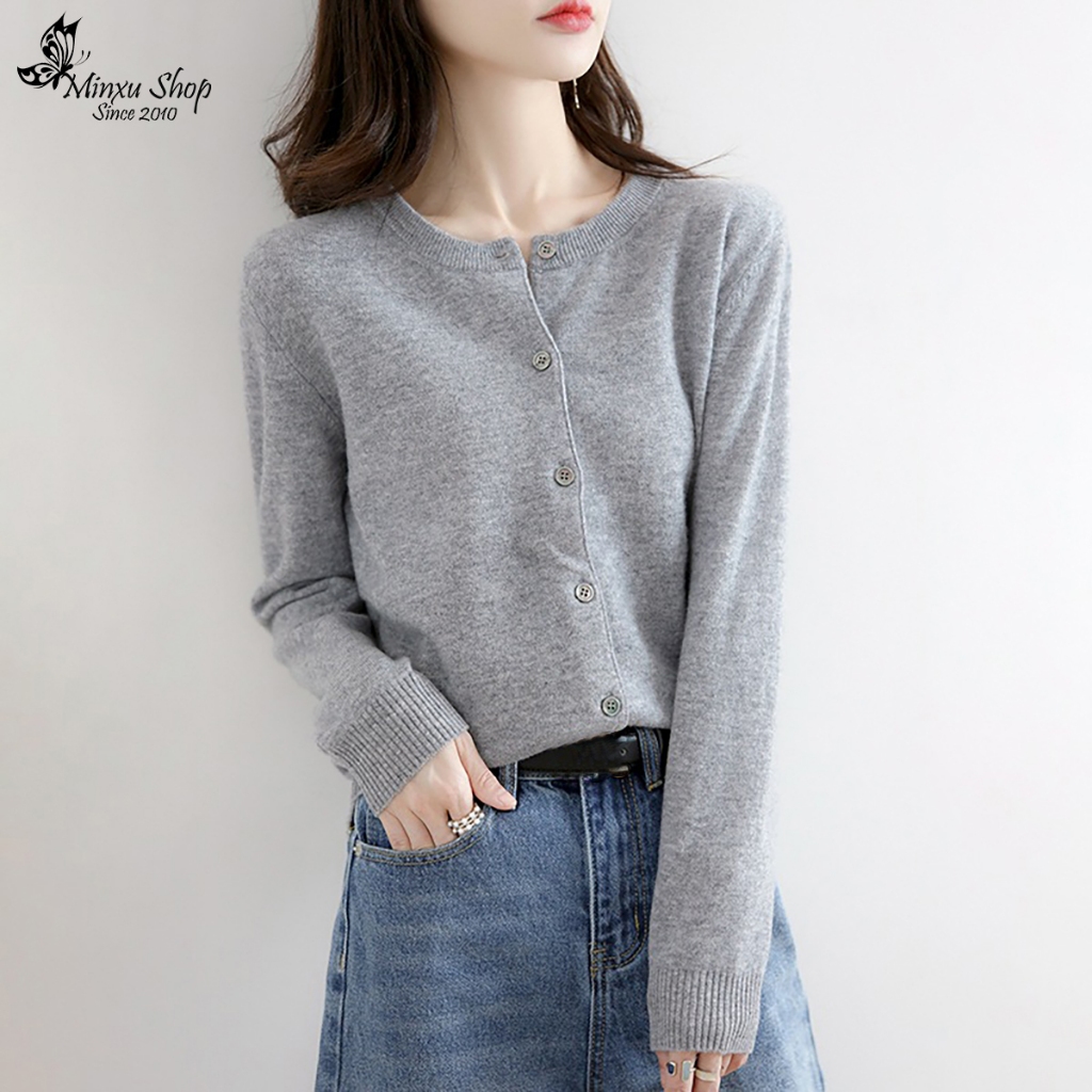 Áo Len Nữ, Áo Len Cadigan Dài Tay Cổ Tròn Dễ Thương, Chất Len Mềm Mịn Hàn Quốc Minxu Shop CE
