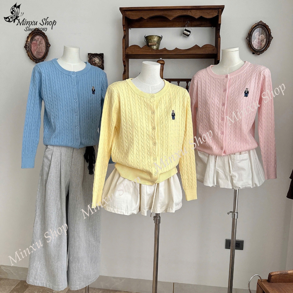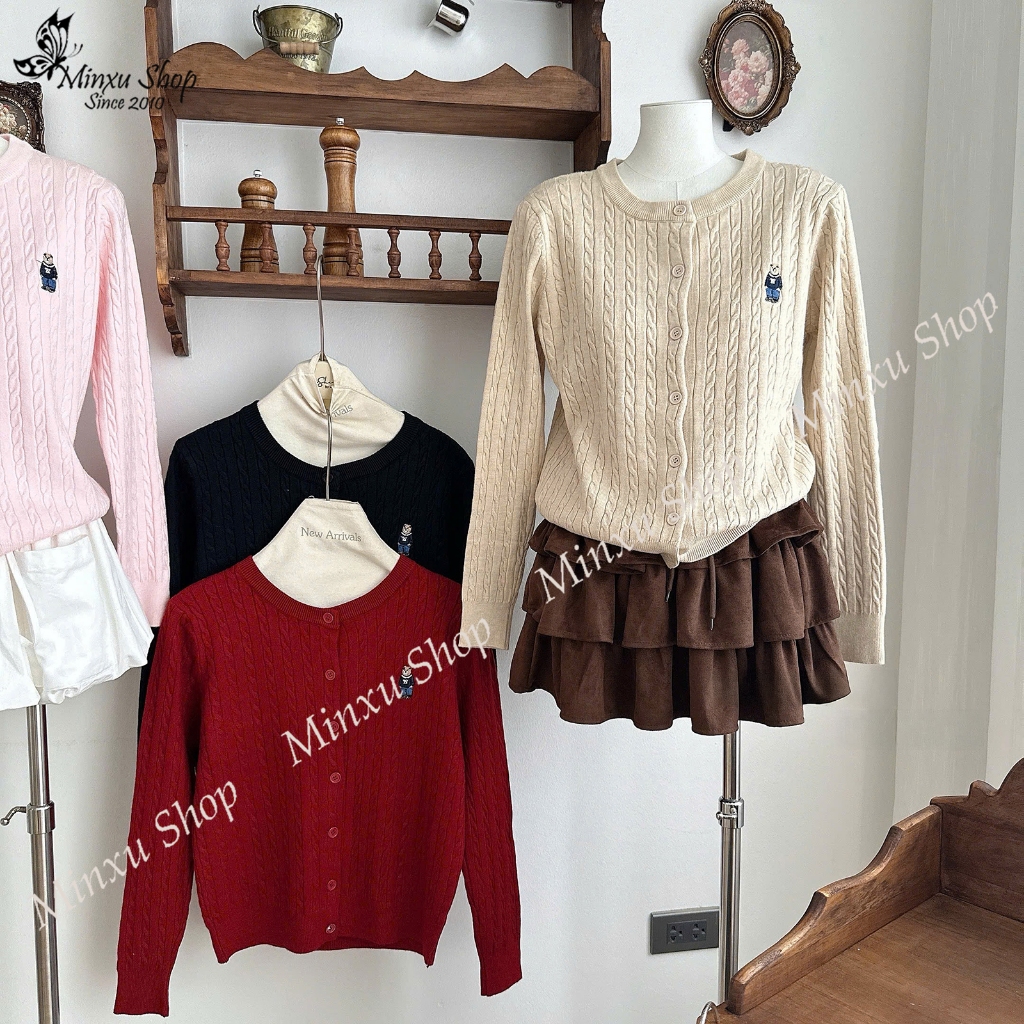 Áo Len cardigan Dài Tay Vặn Thừng Thêu Gấu W Hàng QC Minxu Shop TA63