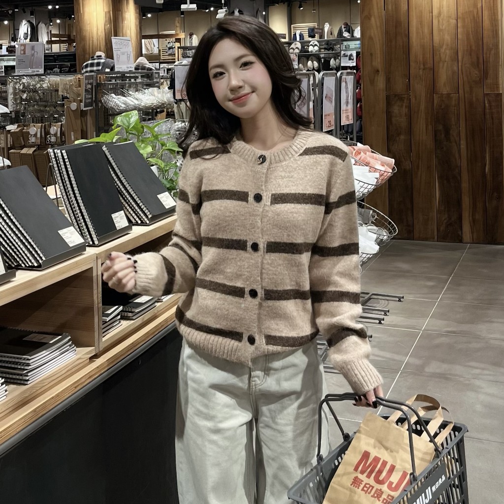 (HAVANA - QC LOẠI 1) Áo cardigan len lông thỏ basic phối kẻ sọc ngang đính cúc cùng màu LEN313