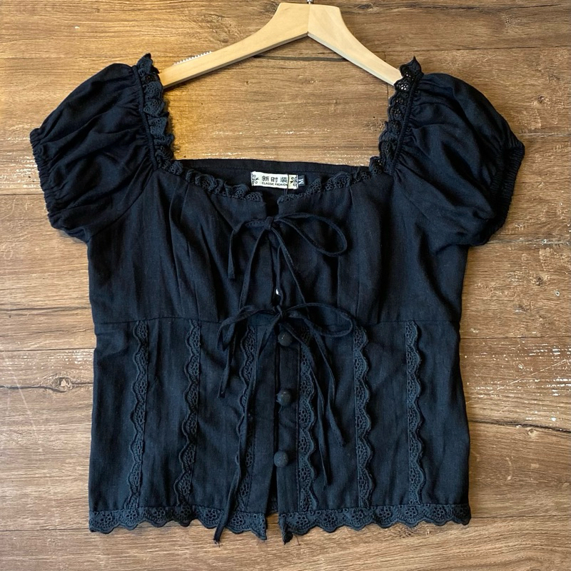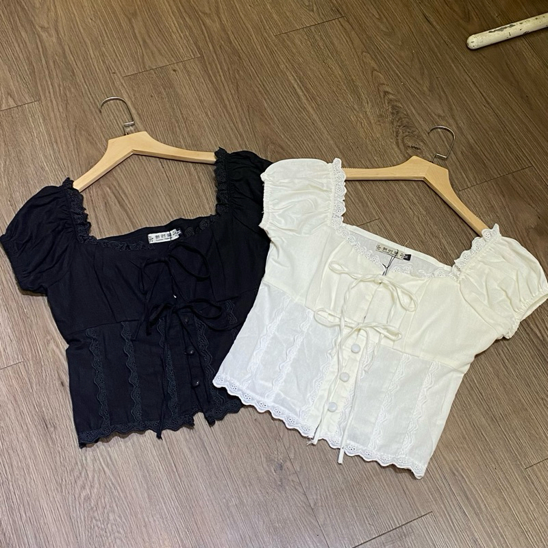 Áo Linen Viền Ren Nút Bọc - Rabbit Top