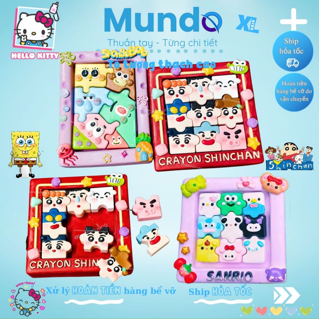[MUNDO] Tô Tượng Thạch Cao Xếp Hình Shin, Sanrio, SpongeBob Size XL – Tượng Tô Màu Sáng Tạo Cho Bé