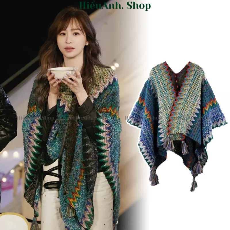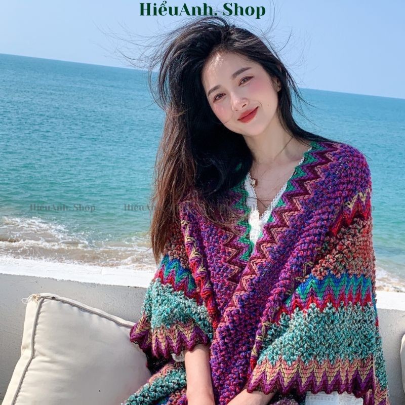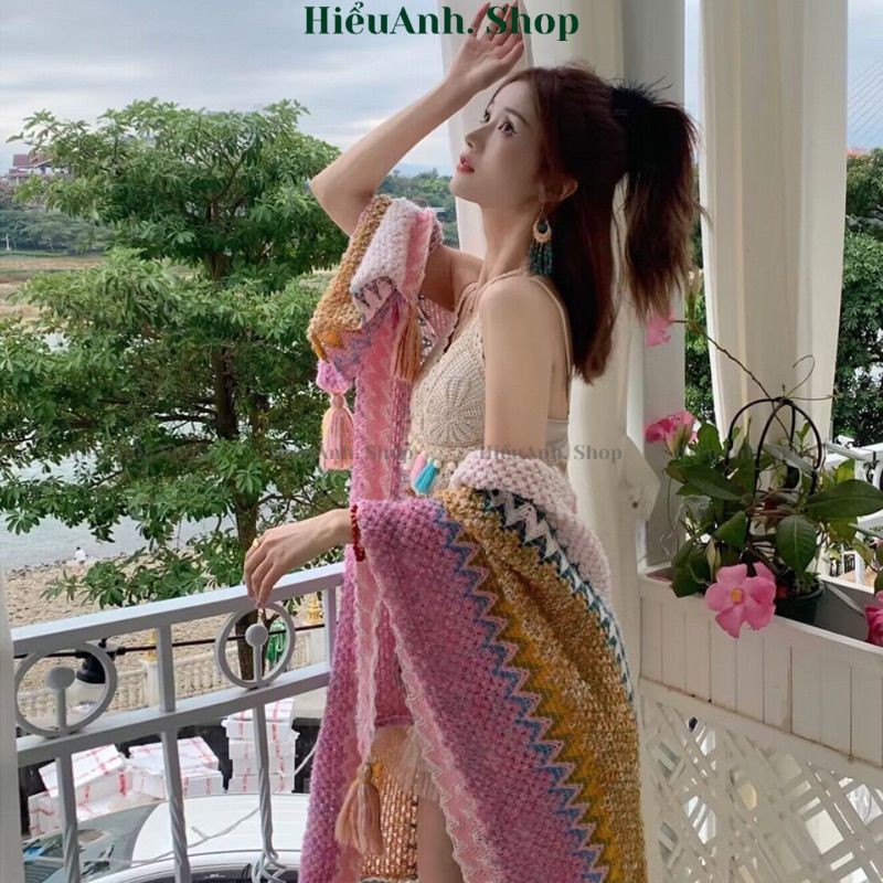 Áo Choàng Kiêm Khăn Choàng Thổ Cẩm Phong Cách Vintage Đi Du Lịch Đà Lạt SaPa Cực Xinh