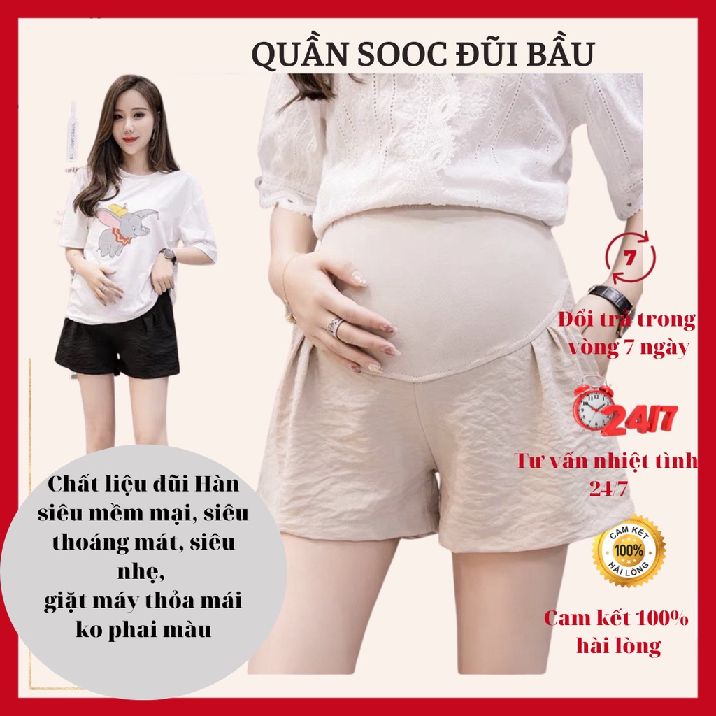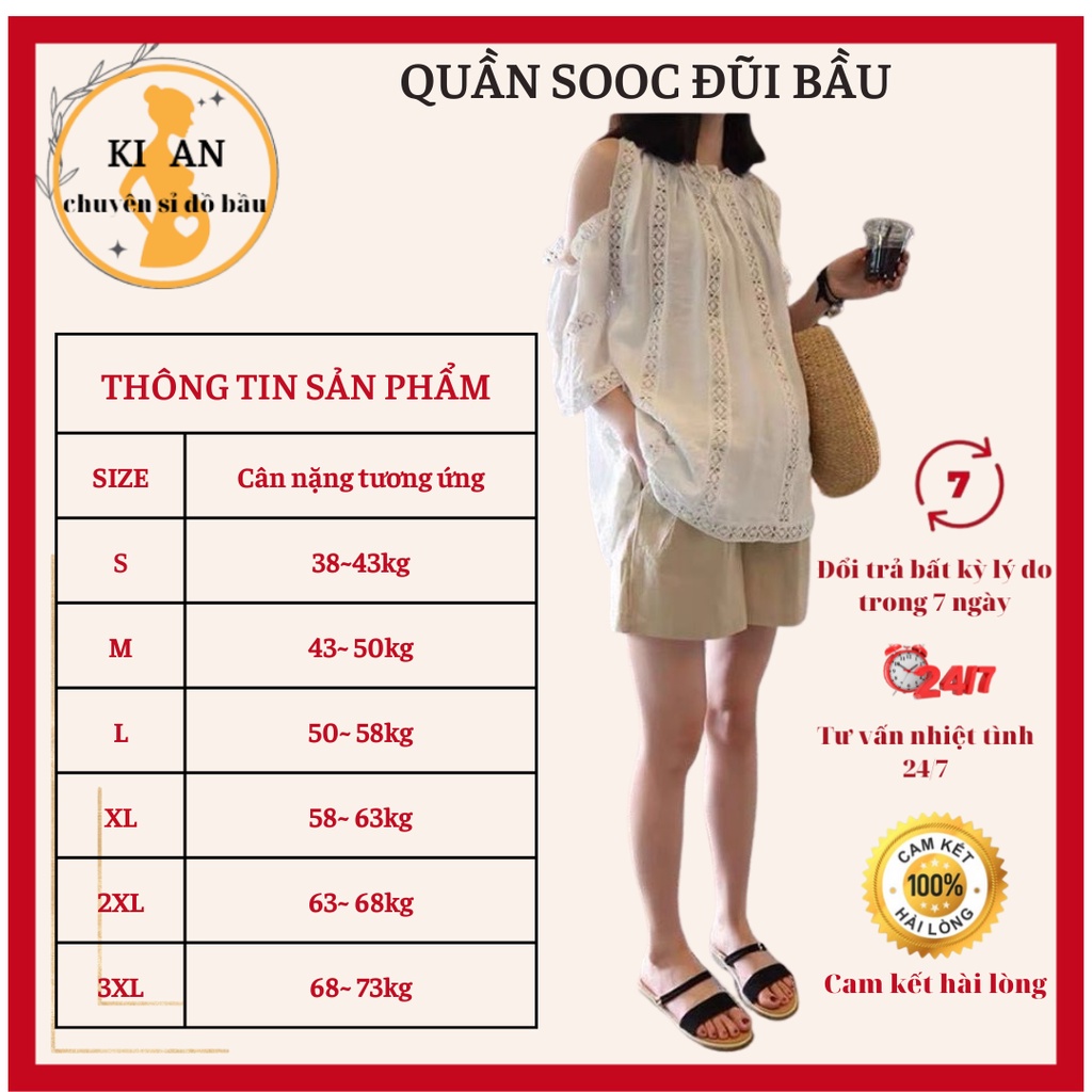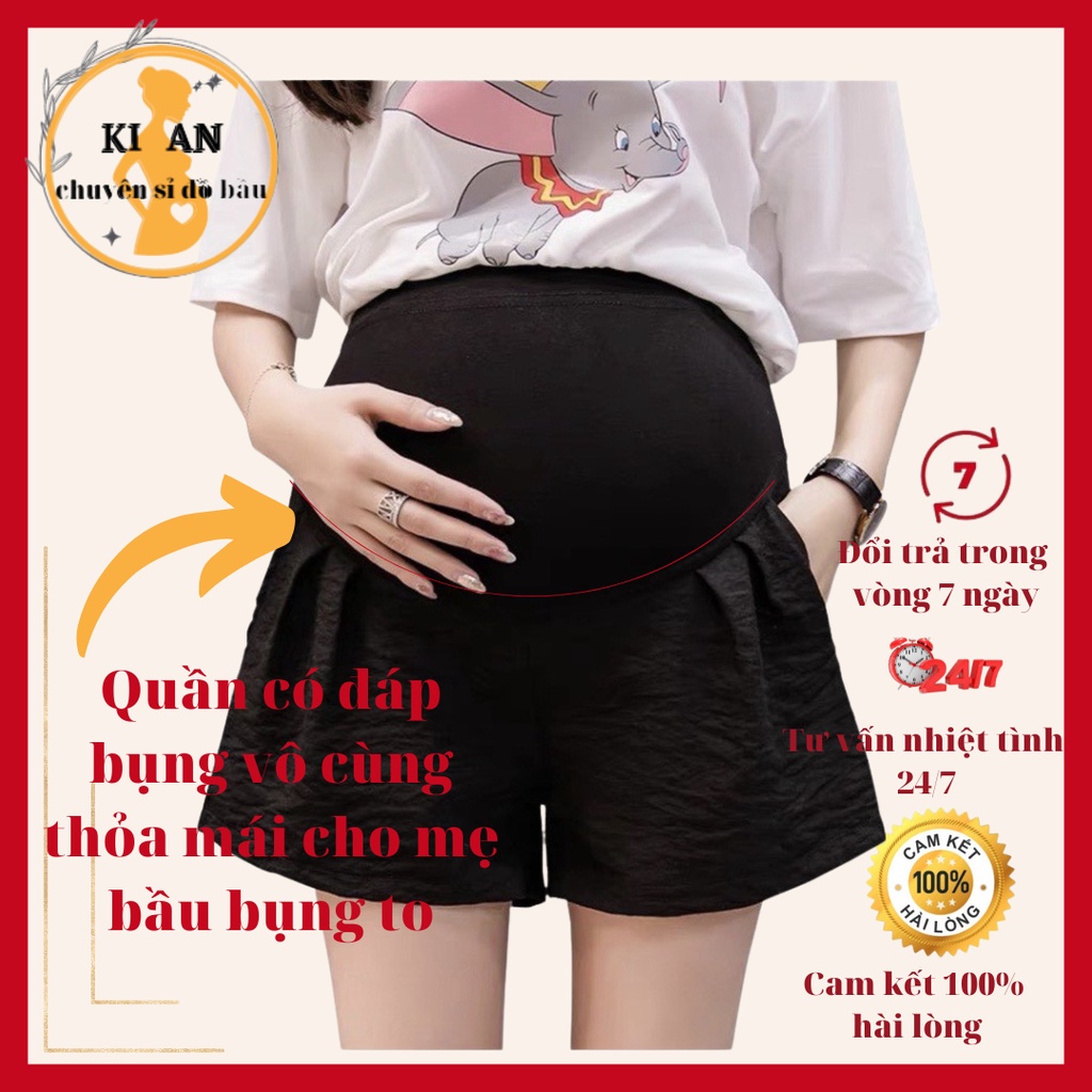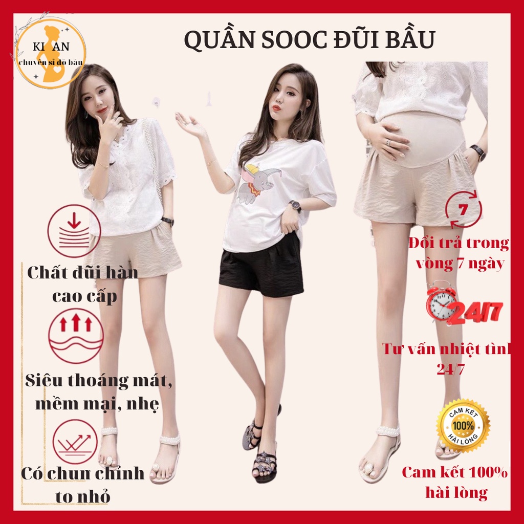 Quần sooc bầu Ki An QB111 chất đũi Hàn siêu mát co giãn nhẹ💕quần đùi bầu có đáp bụng và chun chỉnh☘️size s~3xl