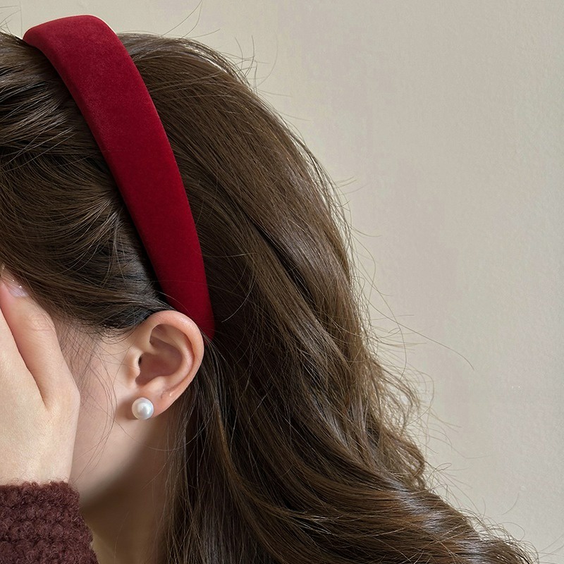 Hàng có sẵn Chúc mừng năm mới Trung Quốc Đỏ Vintage Velvet HairBands Mũ đội đầu