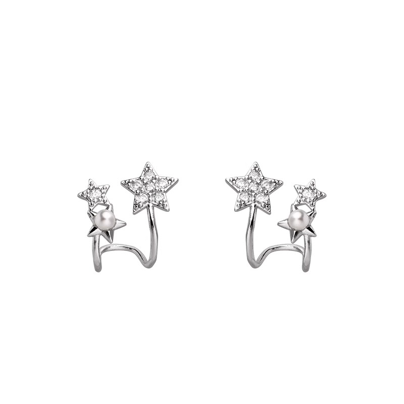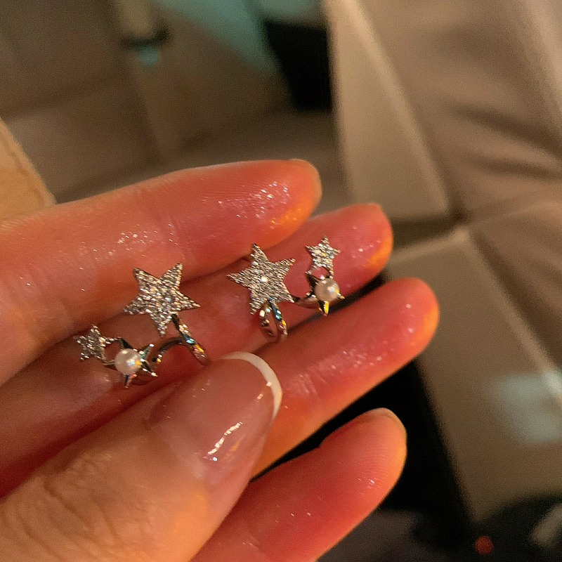 Bông Tai Mạ Bạc 925 Hình Ngôi Sao Đính Ngọc Trai Lấp Lánh