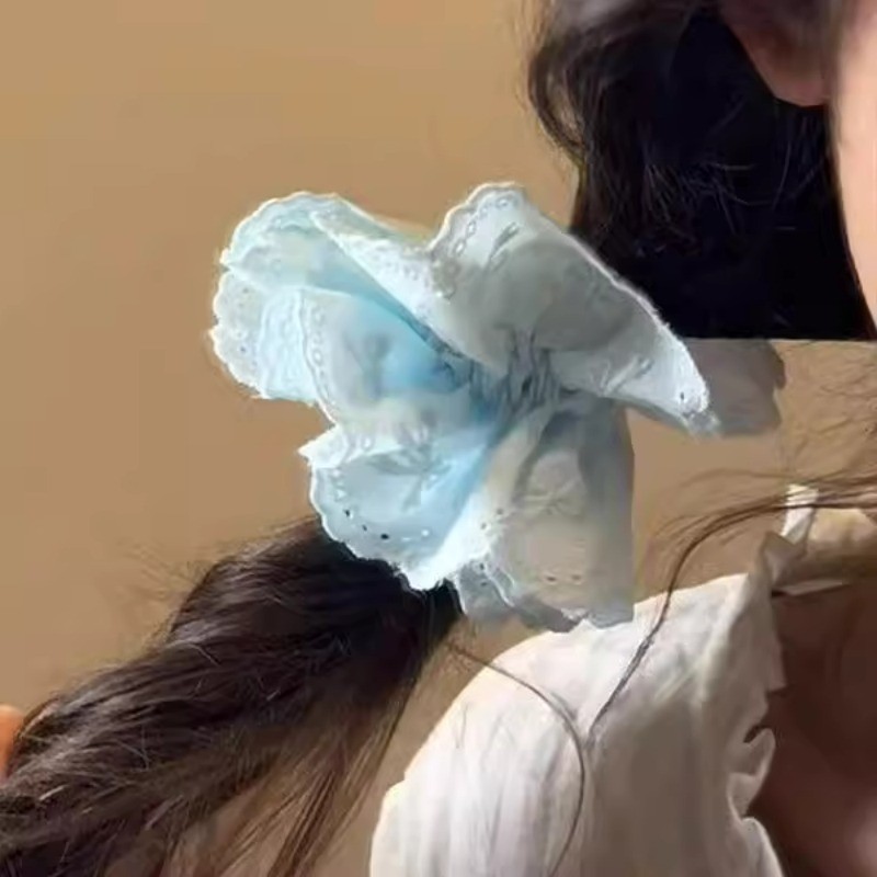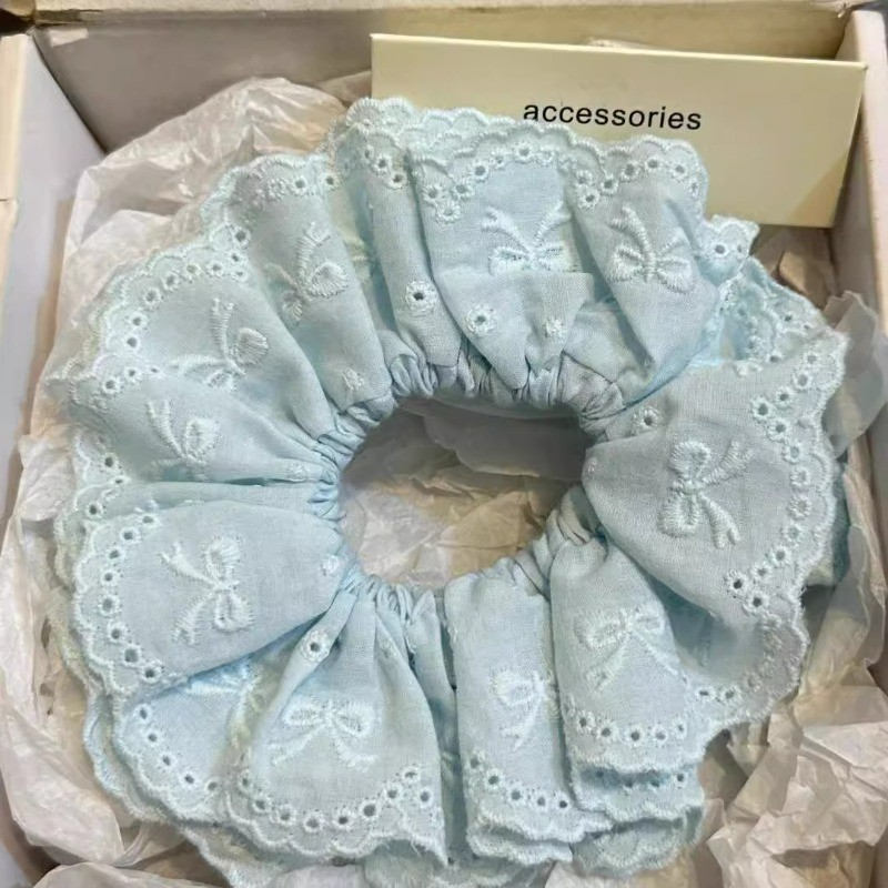 Trắng Xanh Cotton Ren Cổ Tích Priness Dây Tóc Đuôi Ngựa Scrunchies Dây Buộc Tóc Cho Nữ