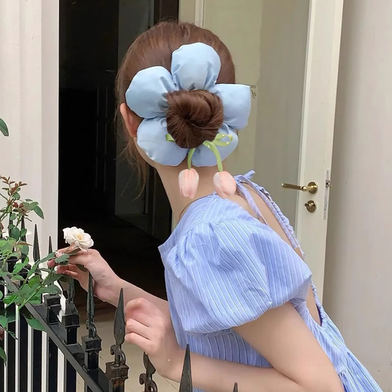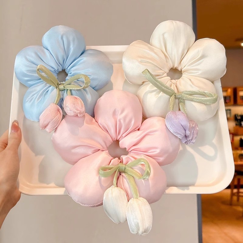 Thời Trang Tòn Hoa Tulip Hình Dạng Tóc Dây Scrunchies Đuôi Ngựa Dây Buộc Tóc Phụ Kiện Tóc