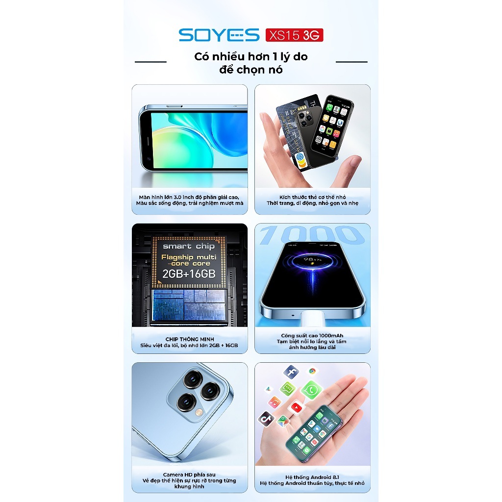 Điện thoại mini siêu nhỏ cảm ứng Soyes XS15, Soyes XS 16