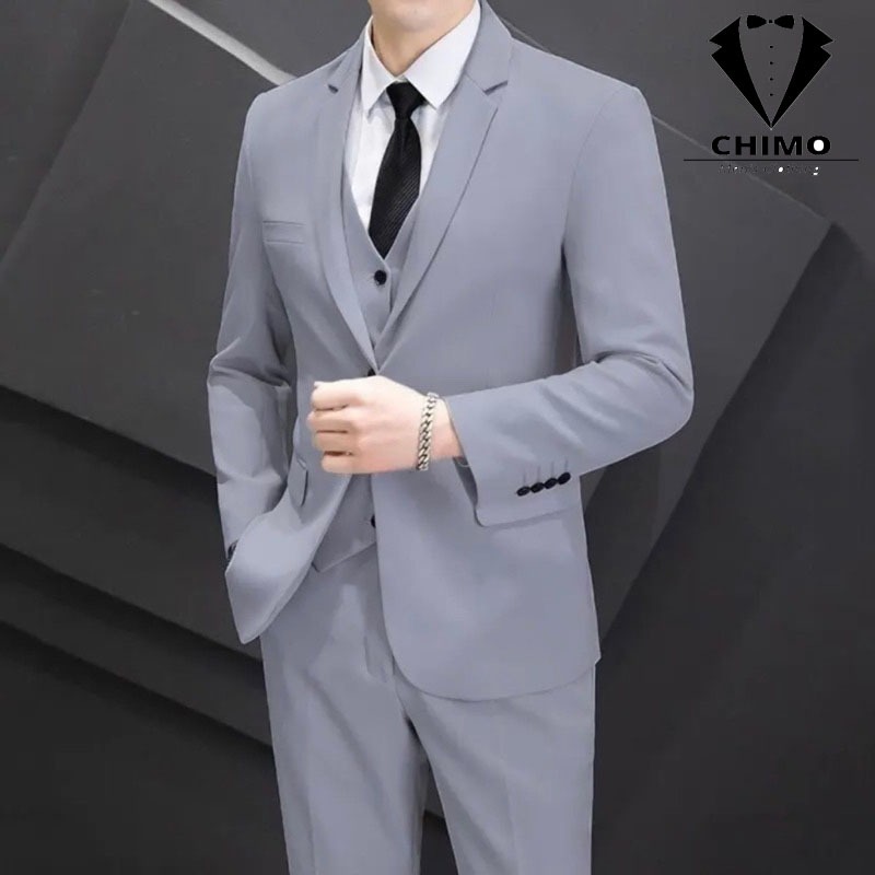 Bộ Vest Nam Cao Cấp form ôm đẹp sang trọng đẳng cấp, Vải Sịn, Suit Nam Hàn Quốc, Tặng Cavat + Ghim Cài Vest + Dây Lưng